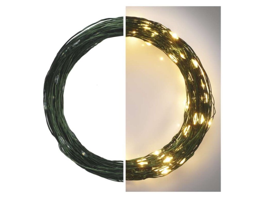 LED vánoční nano řetěz zelený, 15 m, venkovní i vnitřní, teplá bílá, časovač