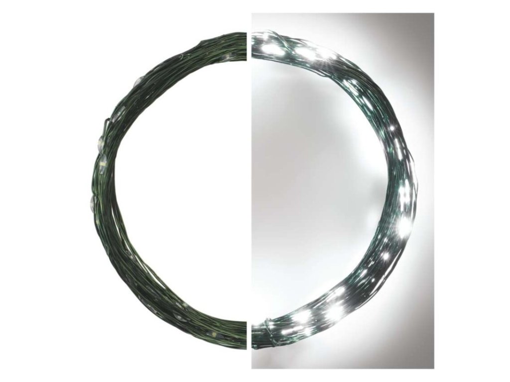 LED vánoční nano řetěz zelený, 7,5 m, venkovní i vnitřní, studená bílá, časovač