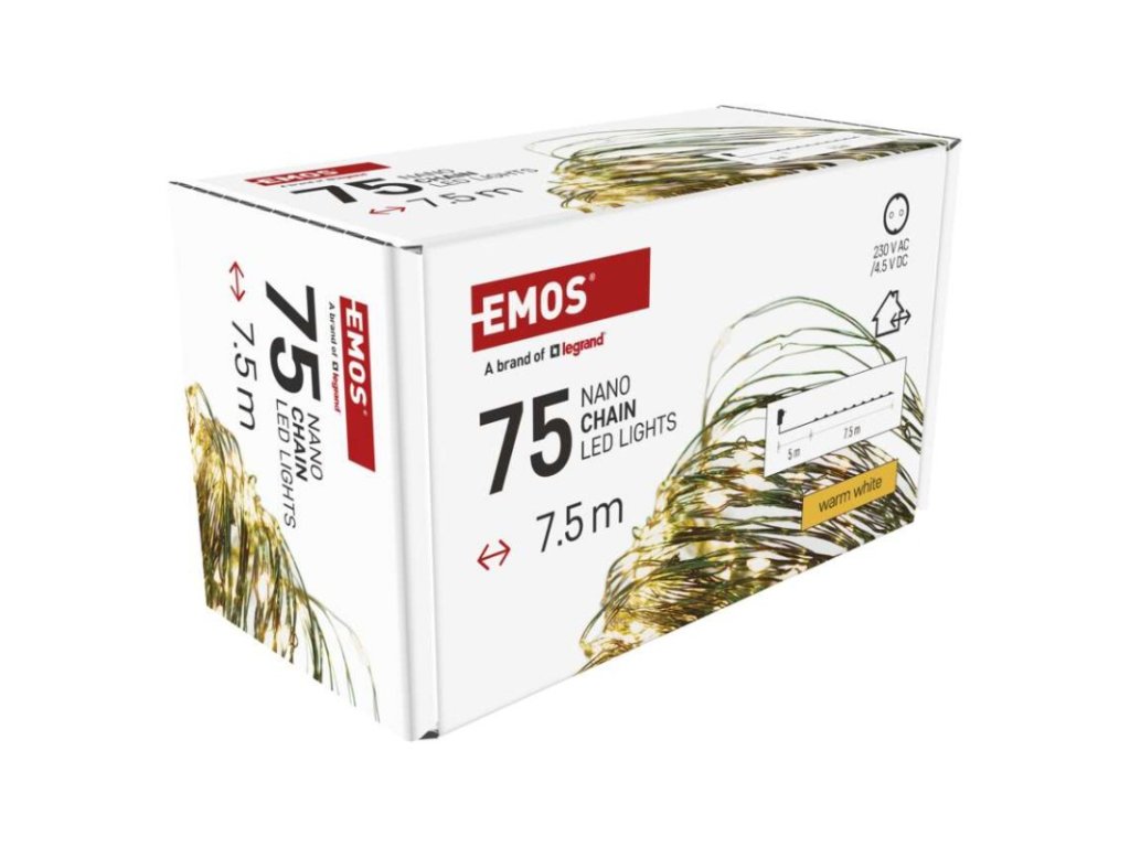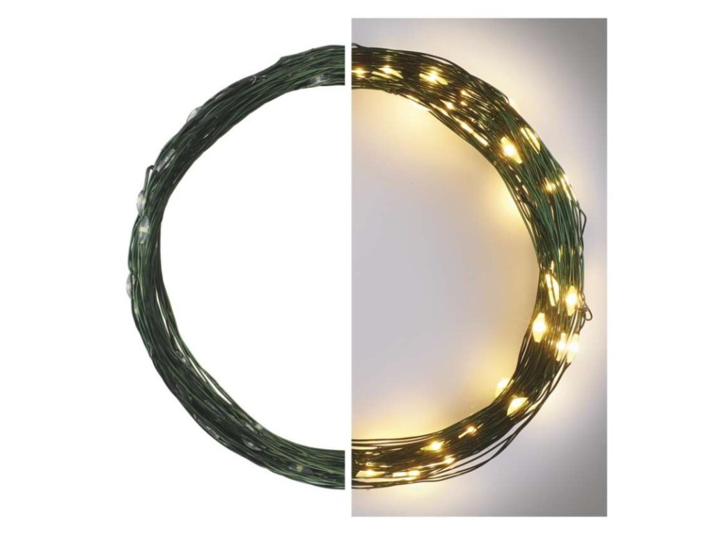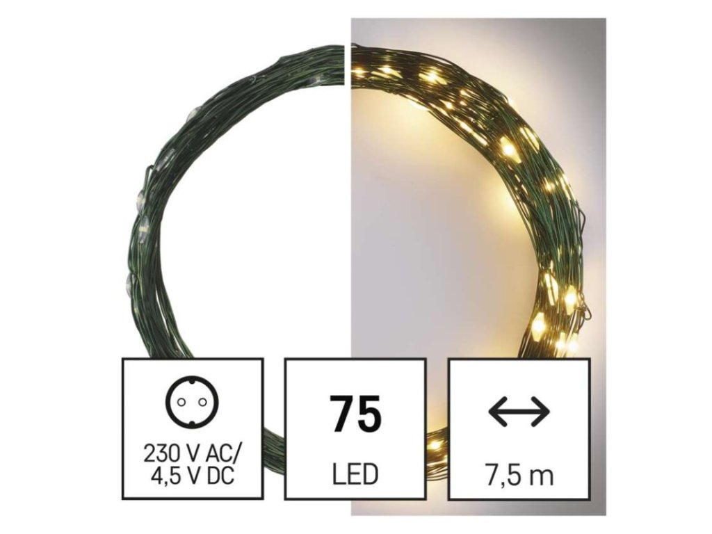 LED vánoční nano řetěz zelený, 7,5 m, venkovní i vnitřní, teplá bílá, časovač
