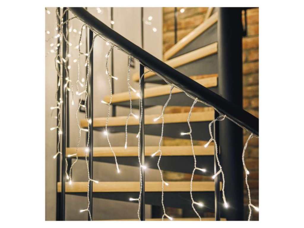 LED vánoční rampouchy, 5 m, venkovní i vnitřní, teplá bílá, ovladač, programy, časovač