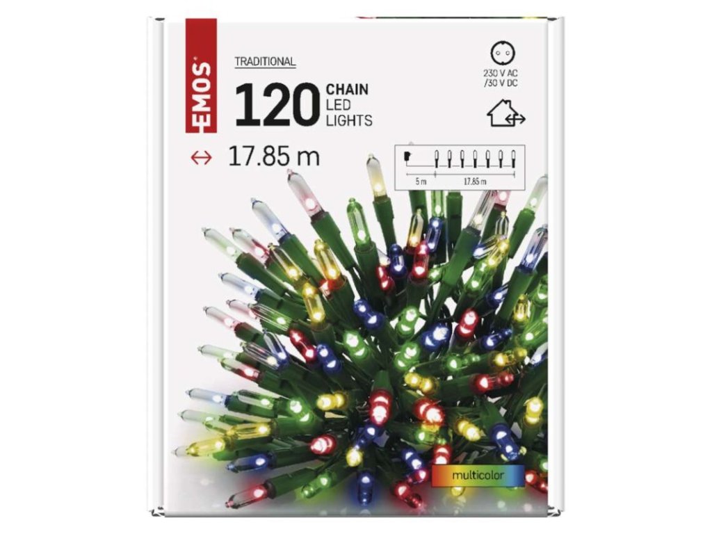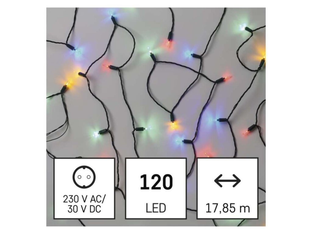 LED vánoční řetěz – tradiční, 17,85 m, venkovní i vnitřní, multicolor