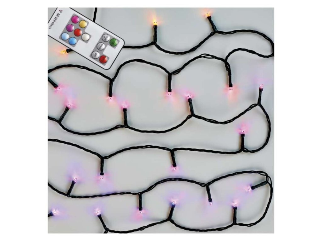 LED vánoční řetěz, 16 m, venkovní i vnitřní, RGB, ovladač, programy, časovač