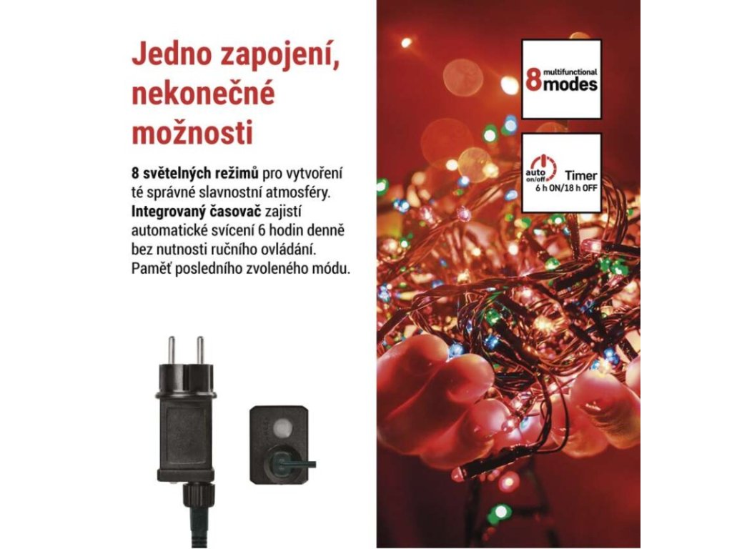 LED vánoční řetěz, 18 m, venkovní i vnitřní, multicolor, programy, časovač