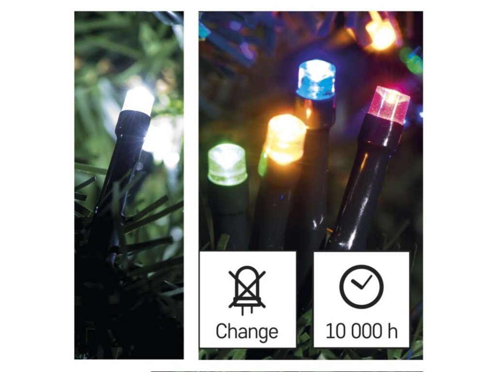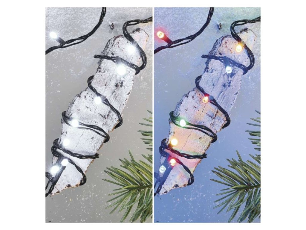 LED vánoční řetěz 2v1, 10 m, venkovní i vnitřní, studená bílá/multicolor, programy