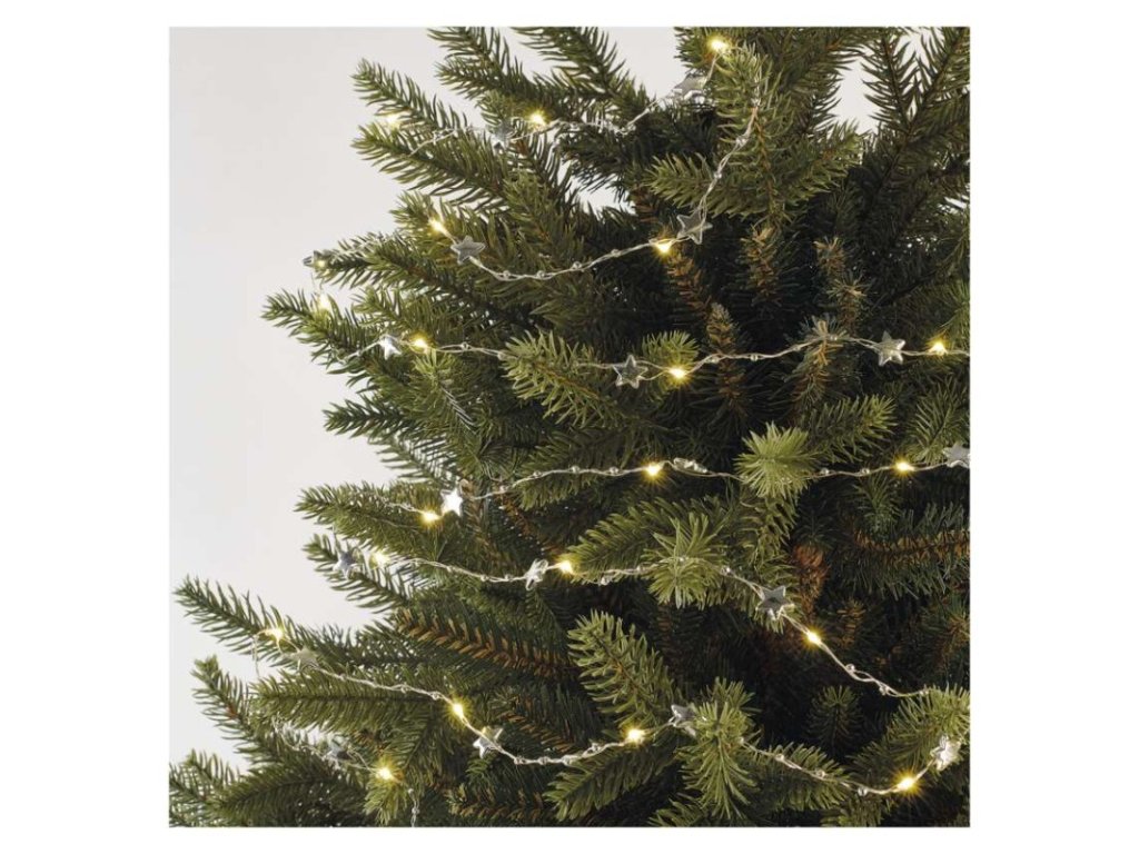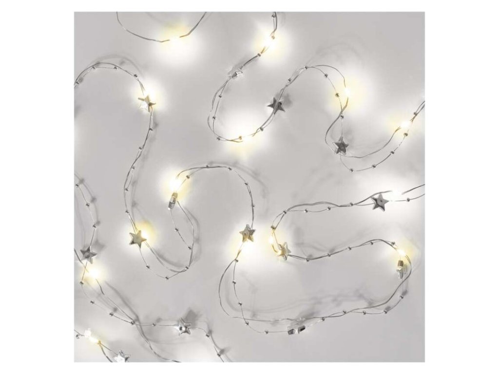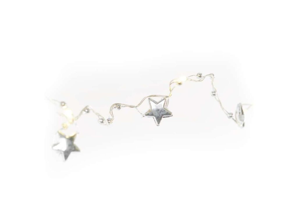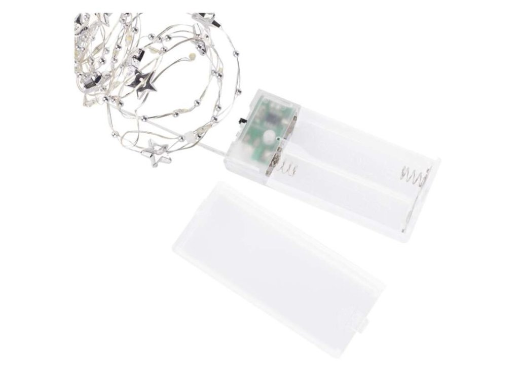 LED vánoční řetěz stříbrný – hvězdičky, 1,9 m, 2x AA, vnitřní, teplá bílá, časovač