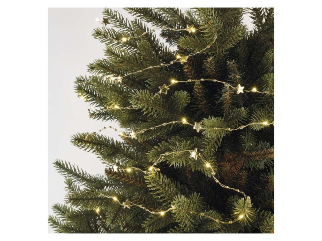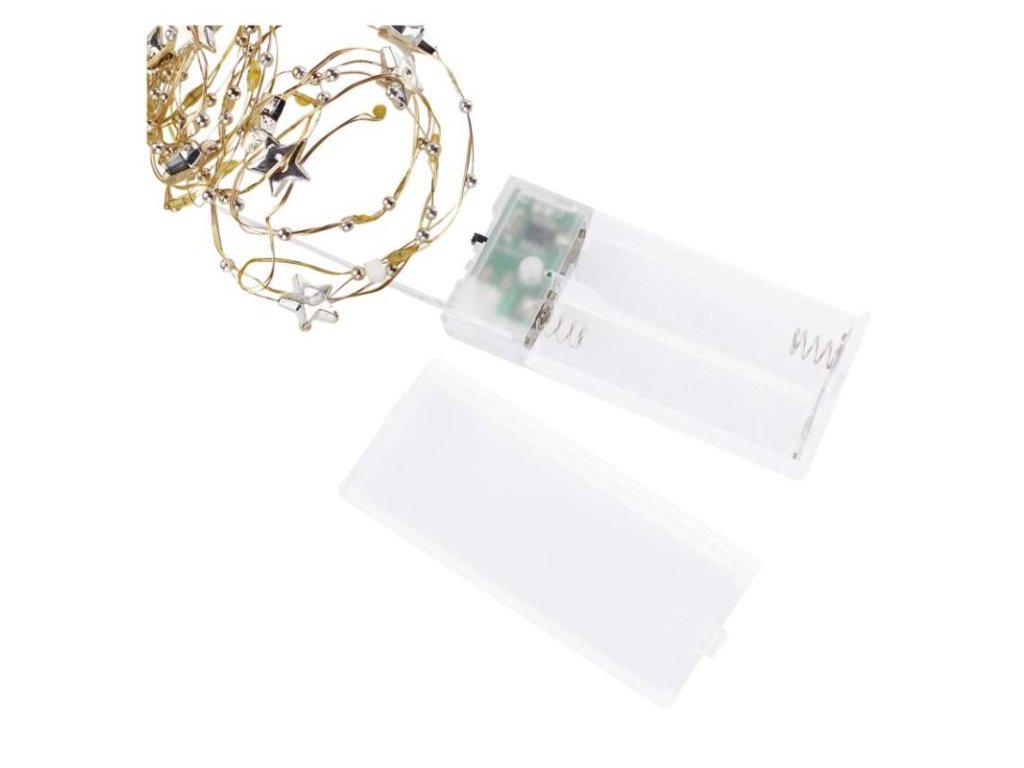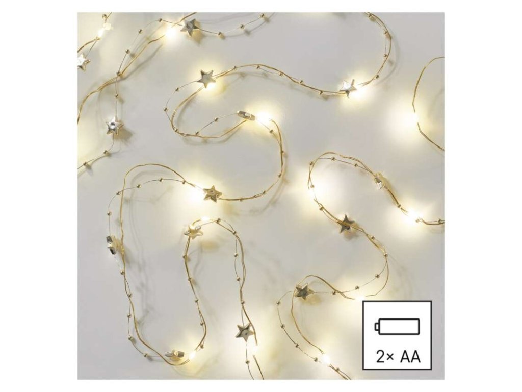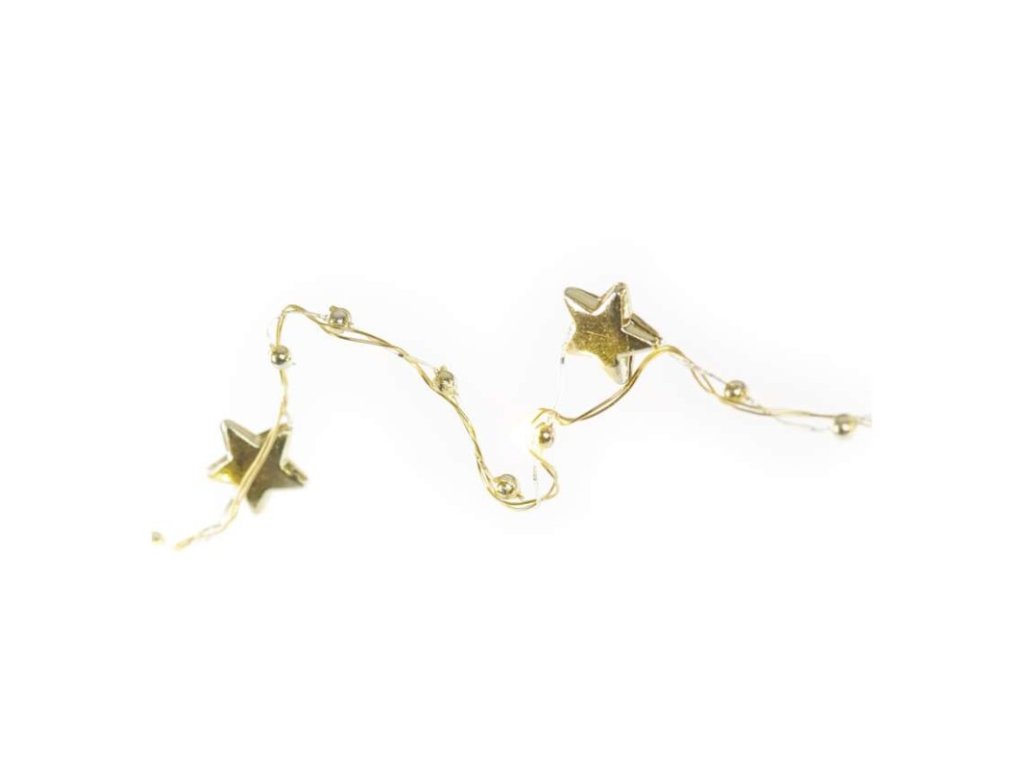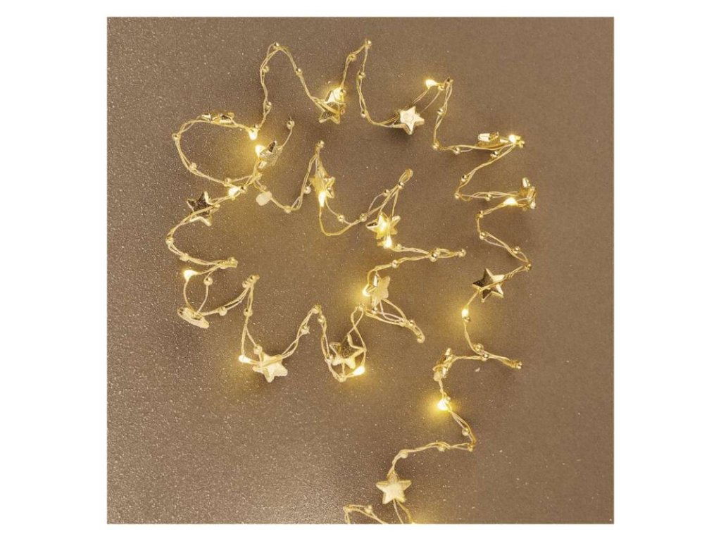 LED vánoční řetěz zlatý – hvězdičky, 1,9 m, 2x AA, vnitřní, teplá bílá, časovač