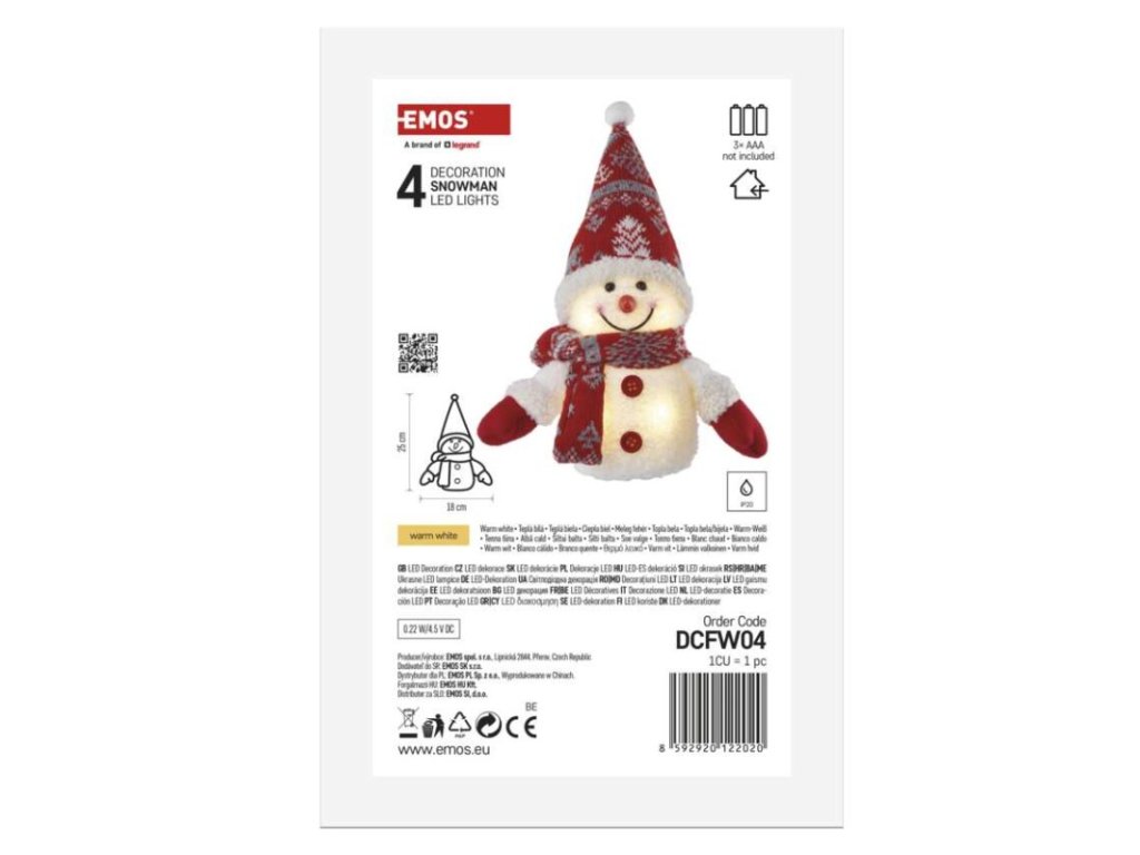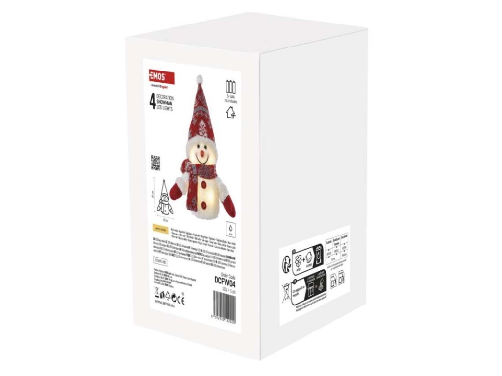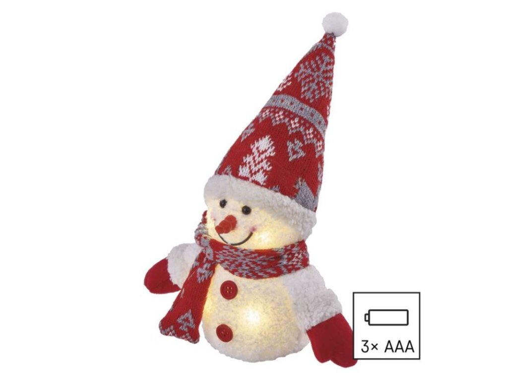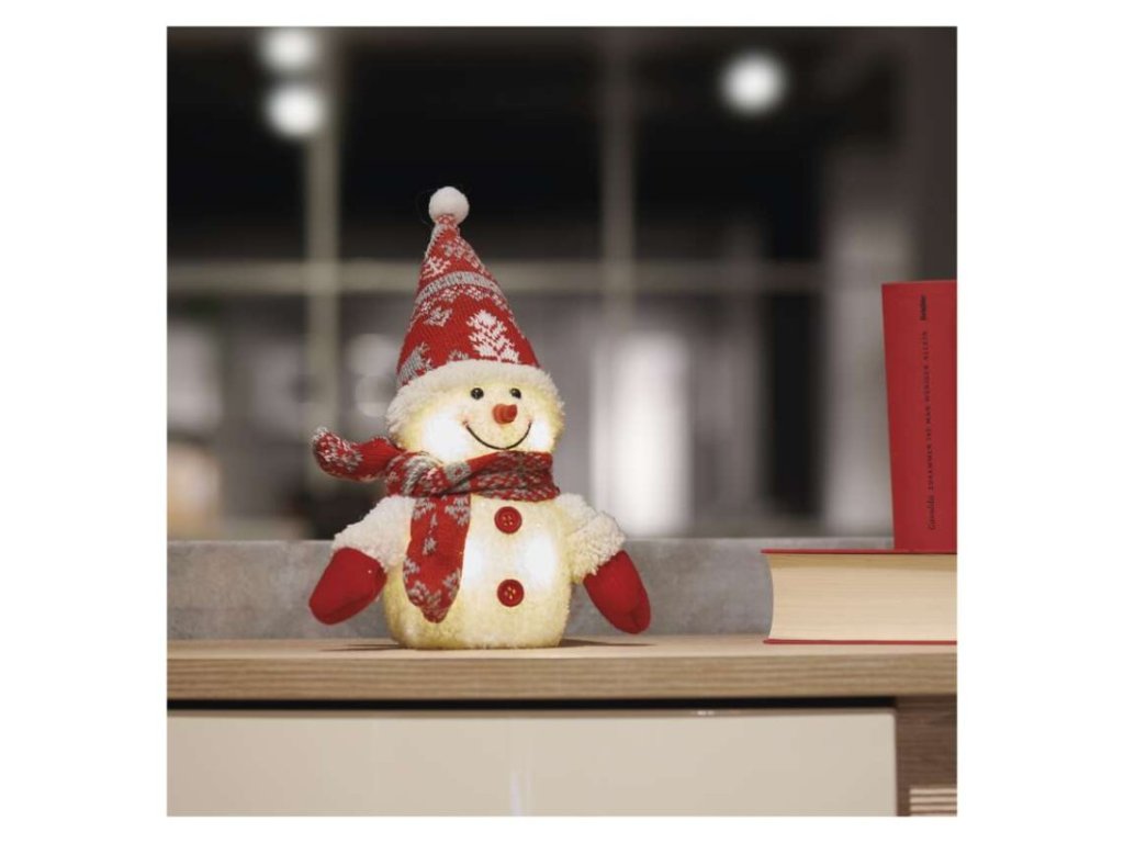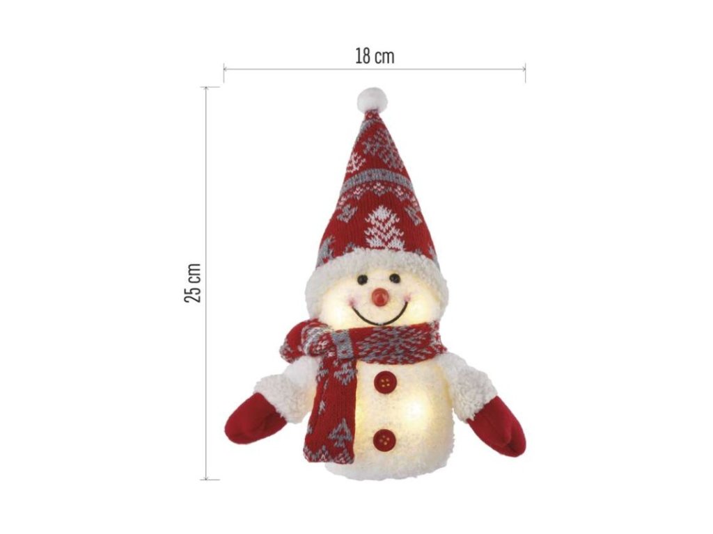 LED vánoční sněhulák svítící, 25 cm, 3x AAA, vnitřní, teplá bílá