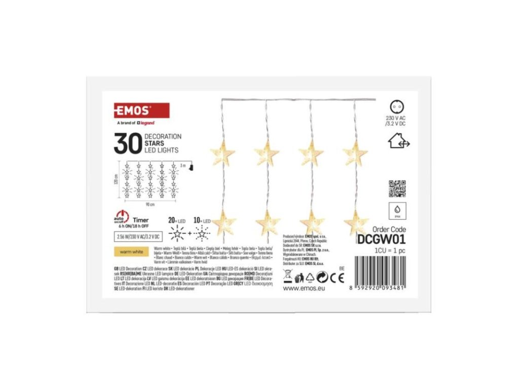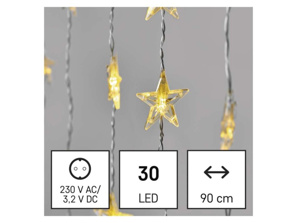 barva drátu: neuvádí se|barva světla: teplá bílá|časovač: ano|dálkový ovladač: ne|délka přívodu: 3 m|krytí: IP44|materiál: plast|počet LED: 30|použití: venkovní i vnitřní|příkon: 2,56 W|prodejní obal: 1 ks, krabice|produkt: závěs|rozměr: 120 × 90 cm|typ napájení: síť|vstupní napětí: 230 V AC|výstupní napětí: 3,2 V DC|záruční doba: 2 roky|zdroj svícení: LED|životnost: 10 000 hodin