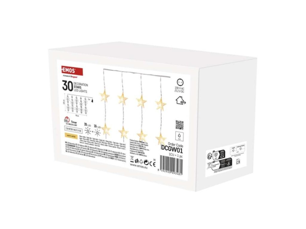 LED vánoční závěs – hvězdy, 120x90 cm, venkovní i vnitřní, teplá bílá, časovač