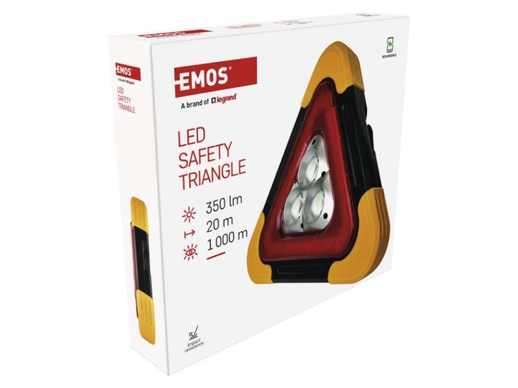 barva: černo-žlutá|baterie součástí balení: ano|doba nabíjení: –|doba svícení: 2–4,5 h|doba svícení detail: COB LED 100 % – 2 h, COB LED 50 % – 4,5 h|dosvit: COB LED 100 % – 20 m, COB LED – 10 m|fokus: ne|hmotnost: 590 g|LED indikace nabíjení: ano|LED indikace stavu akumulátoru: ne|materiál: ABS plast|maximální dosvit: 20 m|maximální světelný tok: 350 lm|nabíjecí: ano|napájení: Li-Ion|nárazuvzdornost: ano|počet režimů svícení: 5|příslušenství: USB kabel|prodejní obal: 1 ks, papírová krabička|režimy svícení: COB LED 100 %, COB LED 50 %, LED červené svícení, LED červené blikání, LED červené blikání|rozměr: 270 × 50 × 245 mm|speciální funkce: LED výstražný trojúhelník|světelný tok: COB LED 100 % – 350 lm, COB LED – 150 lm|typ baterie: 1 800 mAh/3,7 V|typ napájecího konektoru: micro USB|voděodolnost: ne|vybavení: otočná rukojeť|záruční doba: 2 roky|zdroj světla: 3× COB LED + LED červená|značka: EMOS
