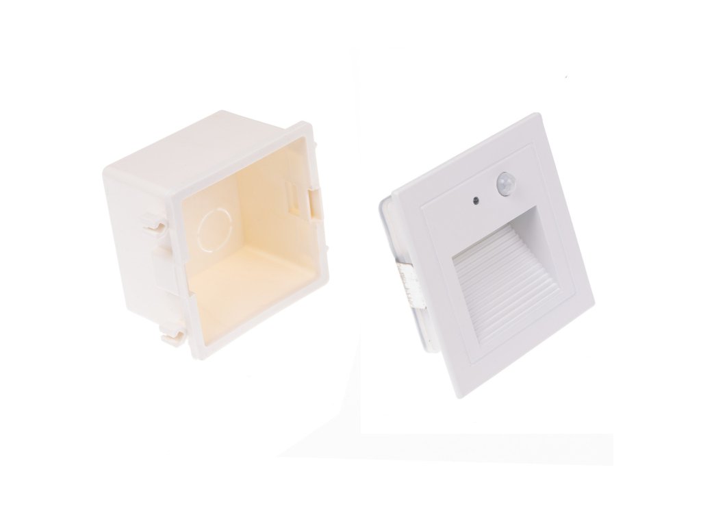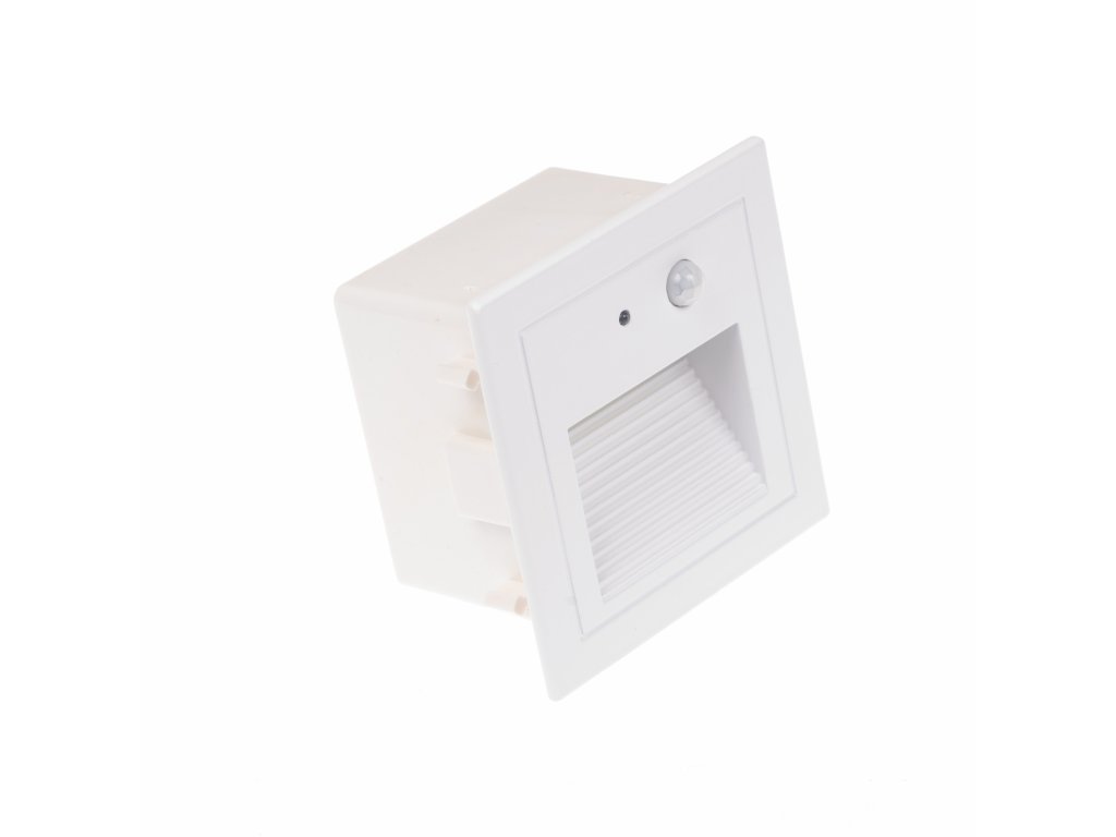 LED svítidlo vestavné na 230V s PIR pohybovým čidlem. Nejčastěji se používá jako orientační osvětlení například ke schodům nebo do chodeb. Čidlo při pohybu sepne svítidlo na cca 35 vteřin, pokud je intenzita světla v okolo pod 5 luxů. Maximální dosah čidla jsou 3 metry.