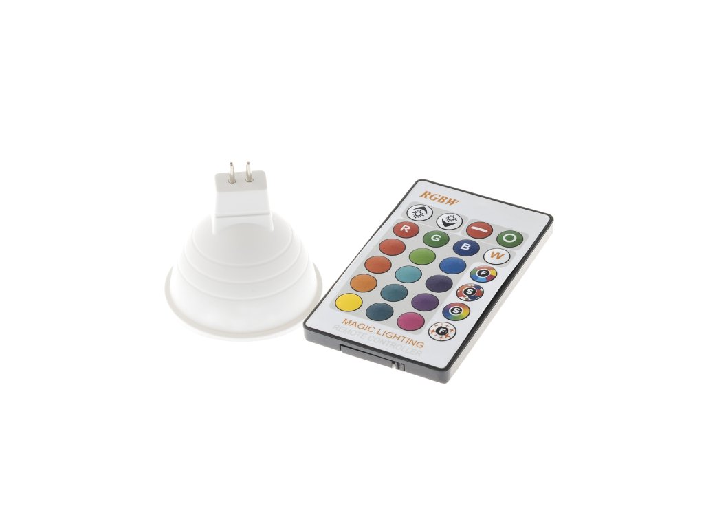 RGBW žárovka s paticí MR16 60˚, 2 varianty barvy světla, 3W, vč. IR ovládání
