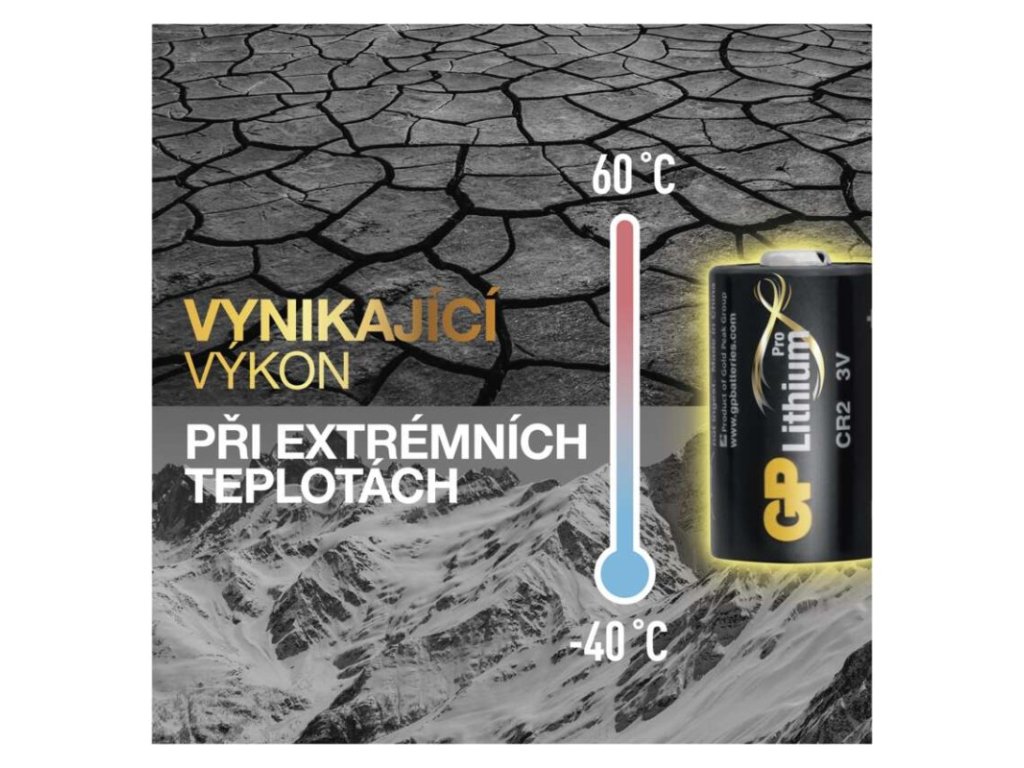 chemické složení: lithiové|hmotnost: 10 g|kapacita: 800 mAh|kategorie/řada: Lithium|max. skladovatelnost: 10 let|možnost nabíjení: ne|napětí: 3 V|počet nabíjecích cyklů: nenabíjecí|prodejní obal: 1 ks, blistr|provozní teplota: -40 °C až +60 °C|rozměr: 15,3 × 26,5 mm|typ: CR2 (DLCR2)|velikost baterie: neuvádí se|značka: GP