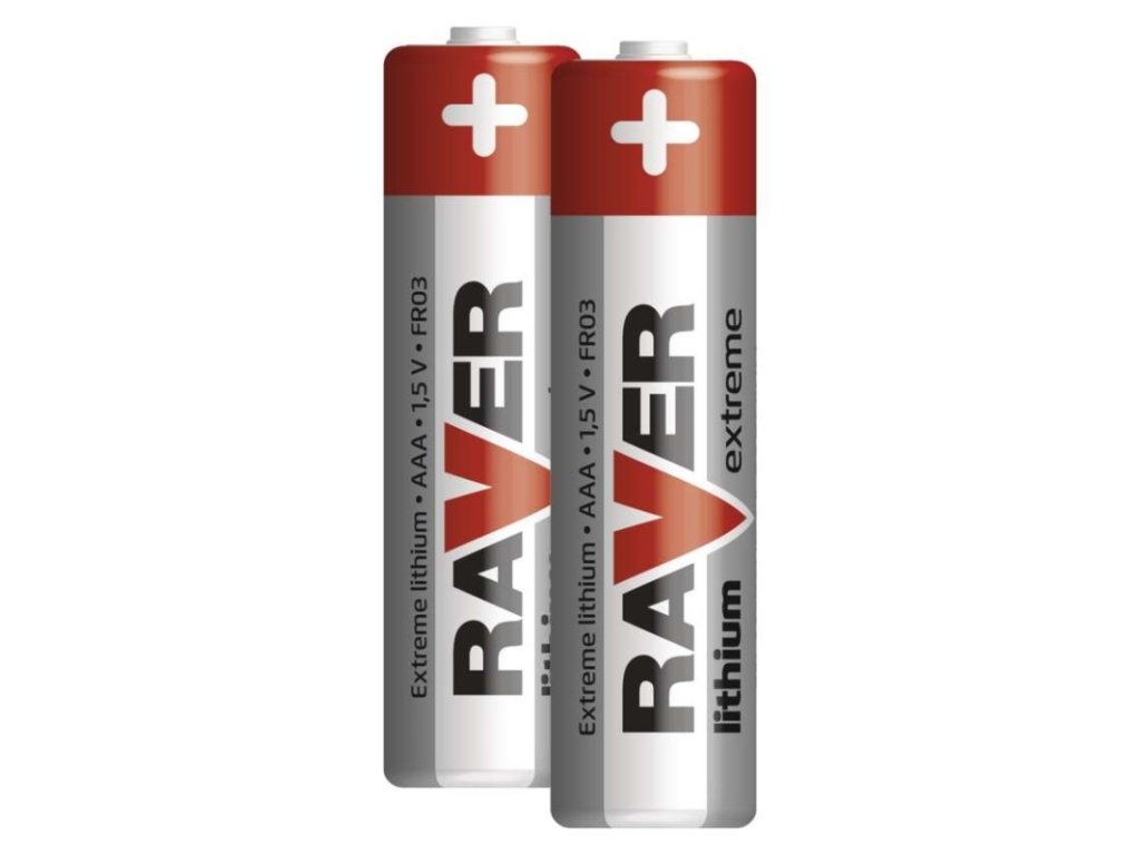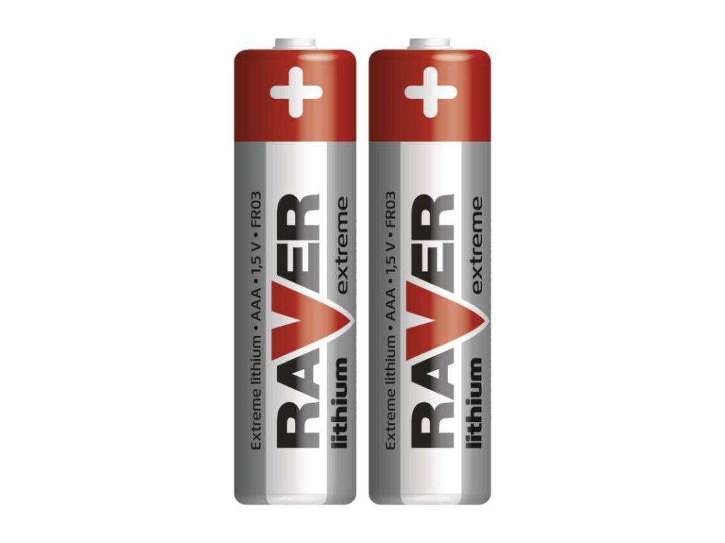 chemické složení: lithiové|hmotnost: 7,2 g|kapacita: neuvádí se|kategorie/řada: Lithium|max. skladovatelnost: 10 let|možnost nabíjení: ne|napětí: 1,5 V|počet nabíjecích cyklů: nenabíjecí|prodejní obal: 2 ks, blistr|provozní teplota: -40 °C až +60 °C|rozměr: 10,5 × 44,5 mm|typ: FR03 (mikrotužka, AAA)|velikost baterie: AAA|značka: Raver