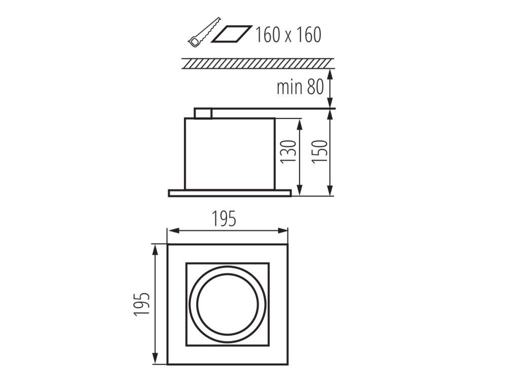 | Průměr montážního otvoru [mm]: | 160x160 |