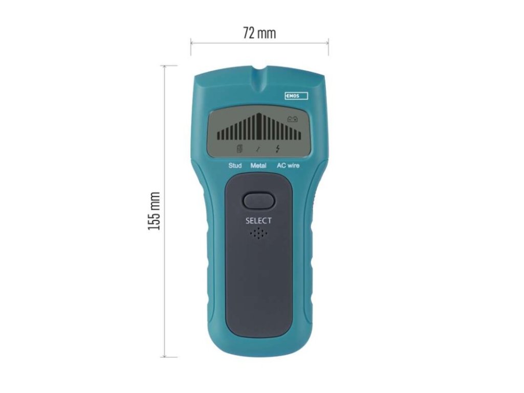 AC napětí: neuvádí se|AC proud: neuvádí se|automatická volba rozsahu: neuvádí se|automatické vypnutí: ano|bezkontaktní detekce AC napětí: neuvádí se|DC napětí: neuvádí se|DC proud: neuvádí se|detekce: dřevo, kov, AC vedení|elektrický odpor: neuvádí se|kontaktní detekce AC napětí: neuvádí se|měření teploty: neuvádí se|napájení: 1× 9 V (součástí balení)|podsvícení displeje: ne|prodejní obal: 1 ks, blistr|rozměr: 28 × 72 × 155 mm|signalizace: optická + akustická|spojitost obvodů: neuvádí se|test baterií: neuvádí se|test diod: neuvádí se|test tranzistorů: neuvádí se|záznam max. hodnoty: neuvádí se|záznam naměřené hodnoty: neuvádí se|zobrazení displeje: neuvádí se