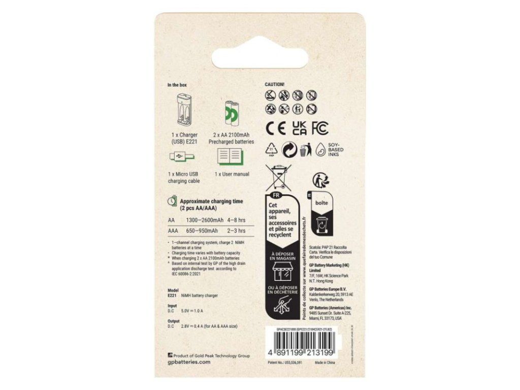 Nabíječka baterií GP Eco E221 + 2× AA ReCyko 2100