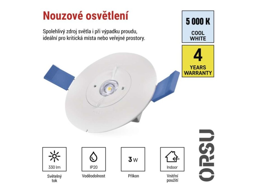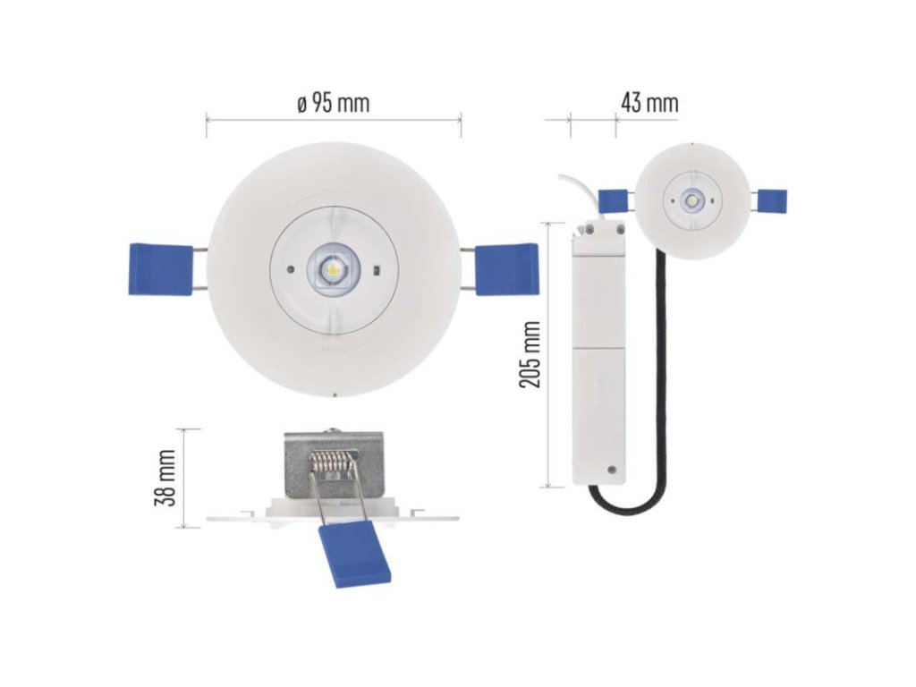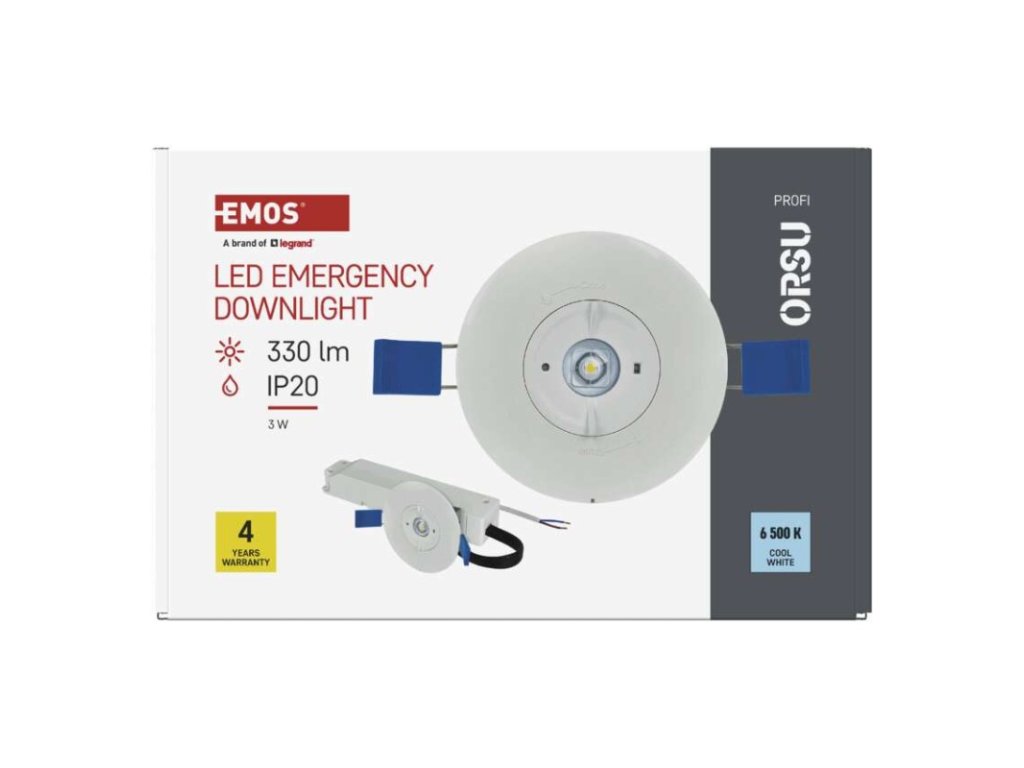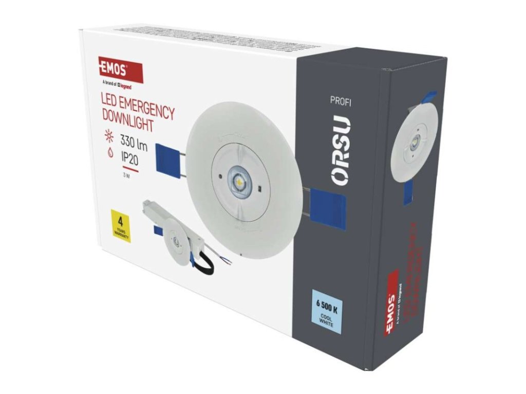 barva světla: studená bílá|barva těla: bílá|délka zálohy: 3 h|doba nabíjení baterie: ≥ 24 hodin|frekvence napájecího napětí: 50/60 Hz|kapacita baterie: 3 300 mAh|kontrolní vybavení: autotest|krytí: IP20|materiál difuzoru: –|materiál těla: plast (PC)|napájecí napětí: 220–240 V AC|příkon na vstupu: 2 W max.|prodejní obal: 1 ks, krabice|provozní režim: pohotovostní|rozměr: průměr 95 × 31 mm|rozsah pracovních teplot: 0 °C až +45 °C|stupeň ochrany proti mechanickým nárazům: –|světelný tok: 300 lm|teplota chromatičnosti: 6 500 K|třída ochrany: II|typ baterie: LiFePo4|typ montáže: vestavná|účiník: >0,5|vstupní proud: 75 mA|výstupní napětí: –|výstupní napětí v nouzovém režimu: –|výstupní výkon v nouzovém stavu: 2,4 W|záruční doba: 4 roky|záruka na baterii: 2 roky|zdroj světla: LED