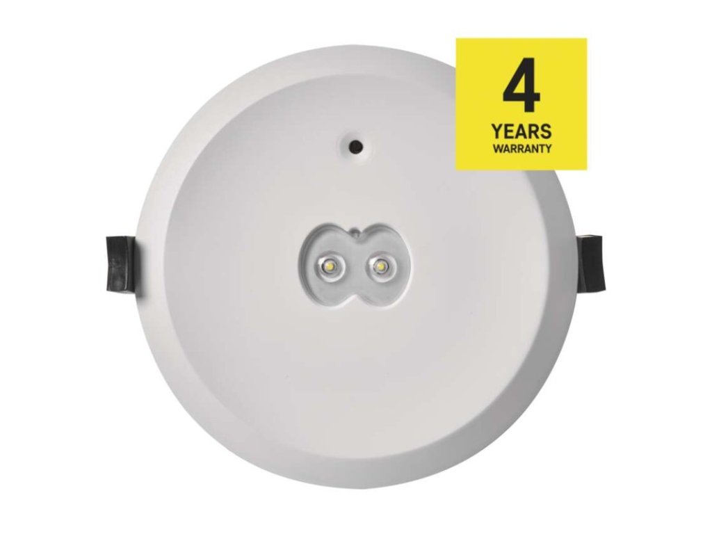 barva světla: studená bílá|barva těla: bílá|délka zálohy: 3 h|doba nabíjení baterie: ≥ 24 hodin|frekvence napájecího napětí: 50/60 Hz|kapacita baterie: 1 500 mAh|kontrolní vybavení: manuální tlačítko|krytí: IP20|materiál difuzoru: neuvádí se|materiál těla: plast (PC)|napájecí napětí: 220–240 V AC|příkon na vstupu: 3 W|prodejní obal: 1 ks, krabice|provozní režim: pohotovostní|rozměr: průměr 140 × 55 mm|rozsah pracovních teplot: 0 °C až +45 °C|stupeň ochrany proti mechanickým nárazům: neuvádí se|světelný tok: 240 lm|teplota chromatičnosti: 6 500 K|třída ochrany: II|typ baterie: LiFePo4|typ montáže: vestavná|účiník: >0,5|vstupní proud: 27 mA|výstupní napětí: neuvádí se|výstupní napětí v nouzovém režimu: neuvádí se|výstupní výkon v nouzovém stavu: 3 W|záruční doba: 4 roky|záruka na baterii: 2 roky|zdroj světla: LED