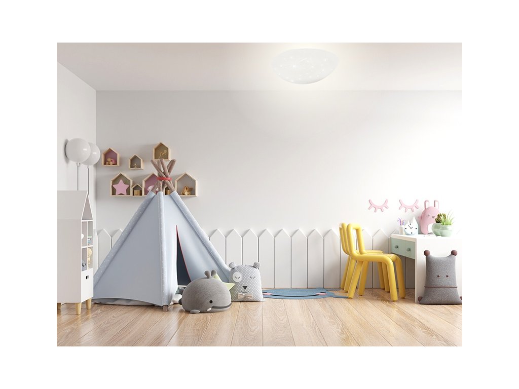 Přisazené stropní nebo nástěnné LED svítidlo s radar senzorem. Plastový kryt se speciální úpravou zajistí příjemný rozptyl světla a s efektem hvězd. #plafonierastars260 #plafonierasensorstars