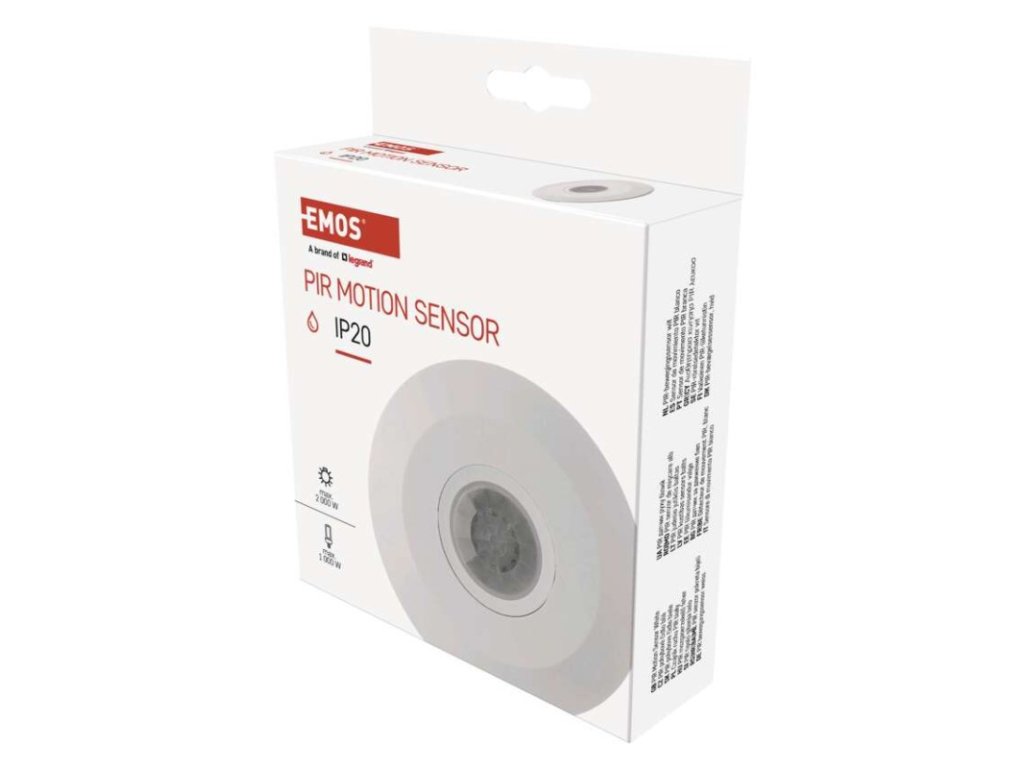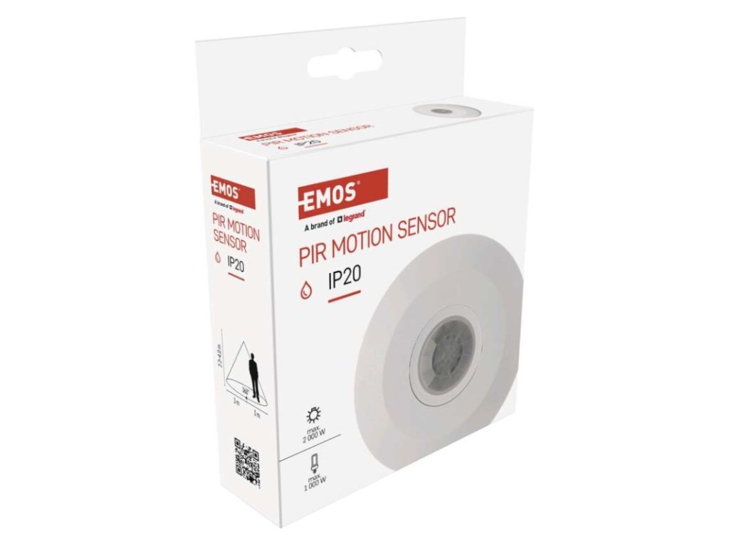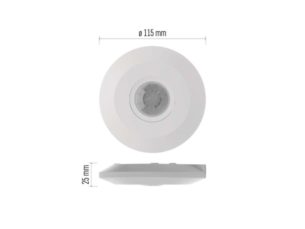 barva: bílá|citlivost: <3 Lux|detekční dosah: 6 m|detekční úhel: 360°|doba sepnutí: min. 10 sekund – max. 15 minut|krytí: IP20|max. zátěž kapacitní: 1 000 W|max. záťěž odporová: 2 000 W|napájení: 230 V~/50 Hz|prodejní obal: 1 ks, krabička|rozměr: 115 × 115 × 25 mm|typ senzoru: PIR