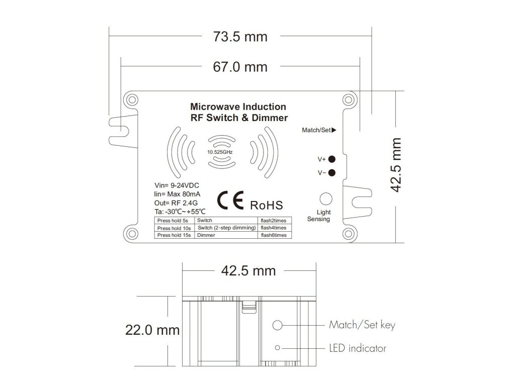 Pohybové čidlo mikrovlnné dimLED MRS, 9-24VDC, k přijímačům dimLED