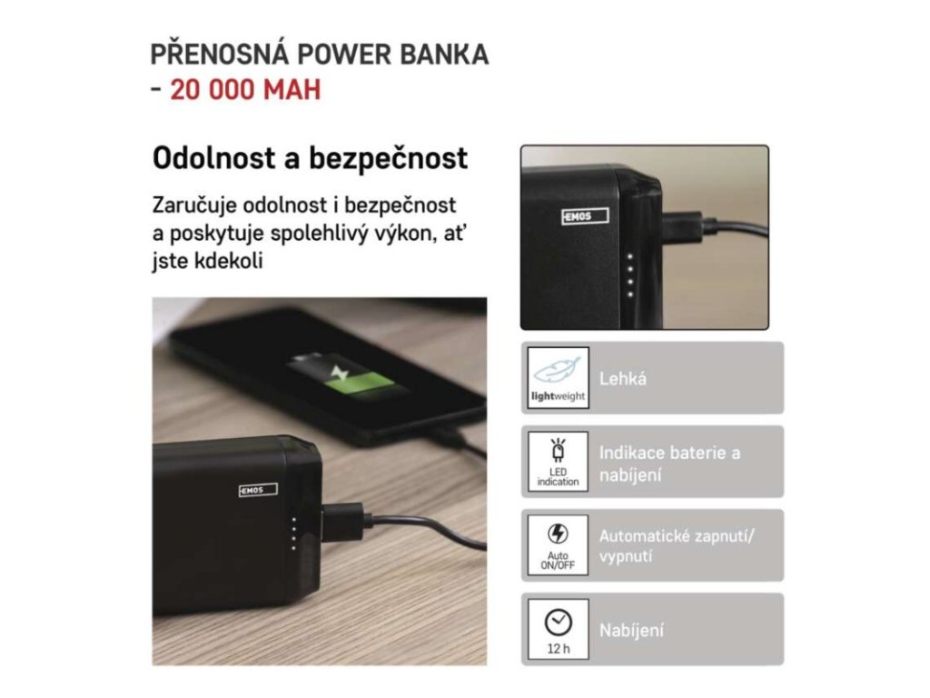Powerbanka EMOS Alpha2 20, 20 000 mAh, 10 W, černá