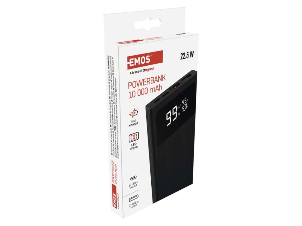 Powerbanka EMOS BetaQ 10, 10 000 mAh, 22,5 W, černá