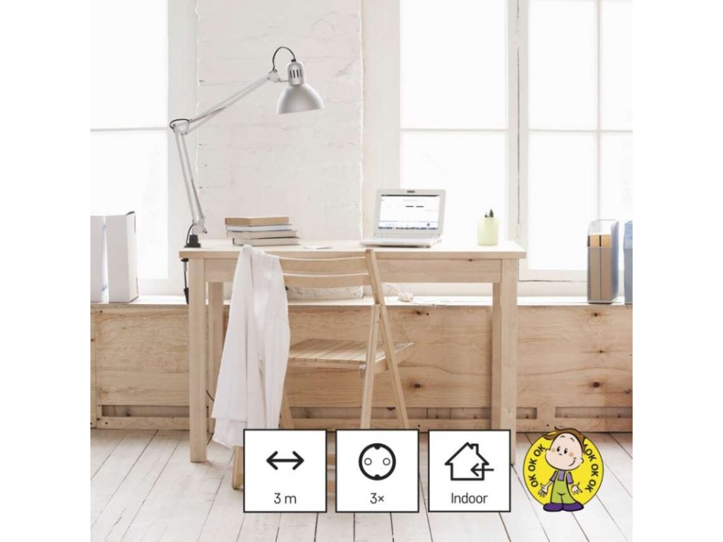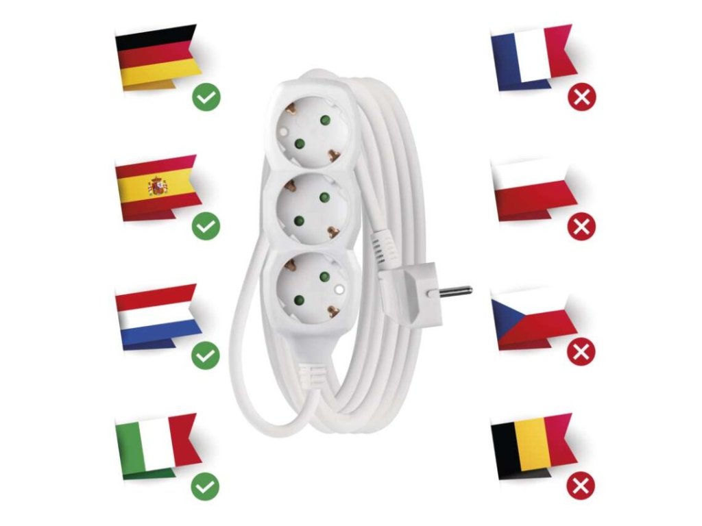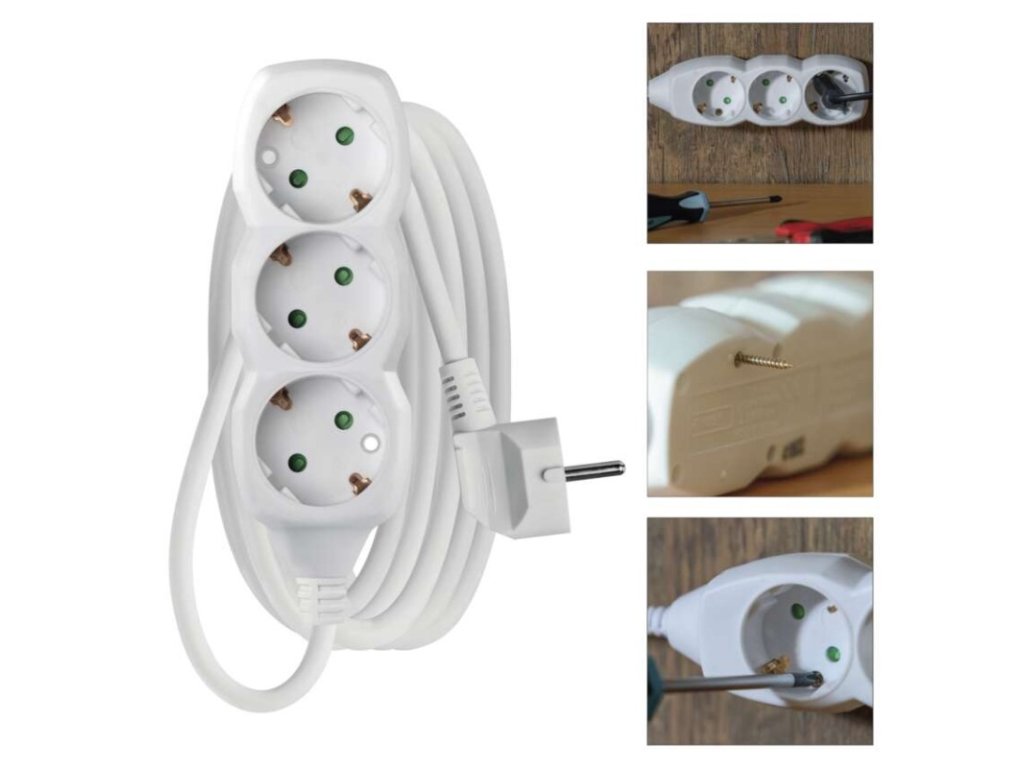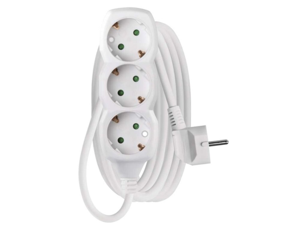 barva: bílá|délka: 3 m|dětské clonky: ano|materiál zásuvky a vidlice: plast|max. zátěž: 3 680 W|napětí/proud: 250 V~/16 A max.|počet zásuvek: 3× 2P + PE SCHUKO|prodejní obal: 1 ks, závěs|typ izolace: PVC|USB výstup: ne|vodič: H05VV-F3G 1,5 mm²|vypínač: ne