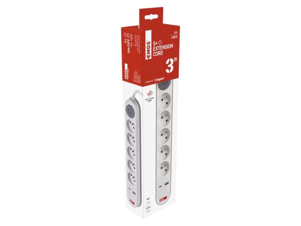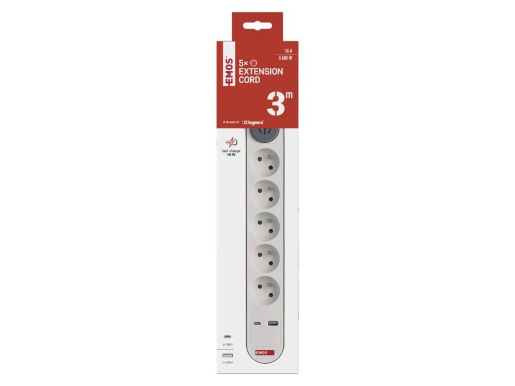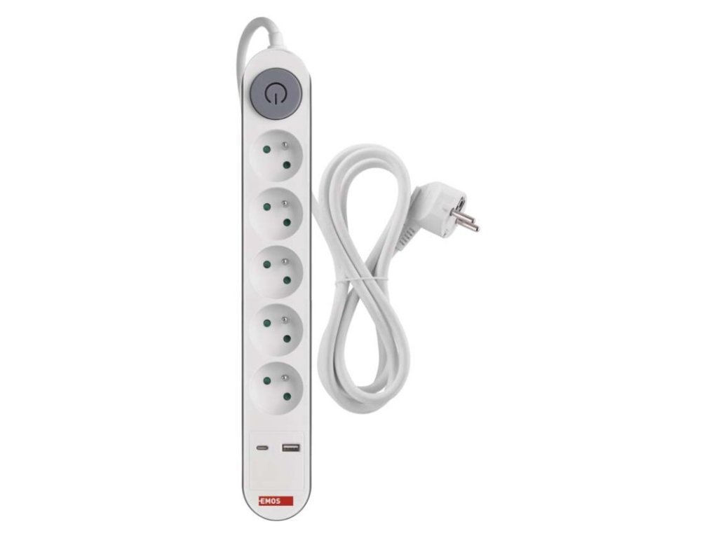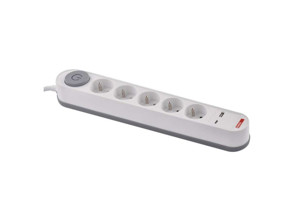 barva: bílá, šedá|další funkce: ne|délka: 3 m|dětské clonky: ano|jazyky aplikace: –|kompatibilita: –|krytí: IP20|materiál zásuvky a vidlice: PC (polykarbonát)|max. zátěž: 3 680 W|napětí: 250 V~|notifikace do mobilní aplikace: ne|ovládání hlasovými asistenty: ne|počet zásuvek: 5× 2P + PE|podporované OS: –|přenosová frekvence: –|prodejní obal: 1 ks, krabice|protokol: –|proud: 16 A max.|průřez vodiče: 1,5 mm²|typ izolace: PVC|USB výstup: 1× USB-A, 1× USB-C, total: 3,4 A – 17 W (fast charging)|vodič: H05VV-F3G|vypínač: ano