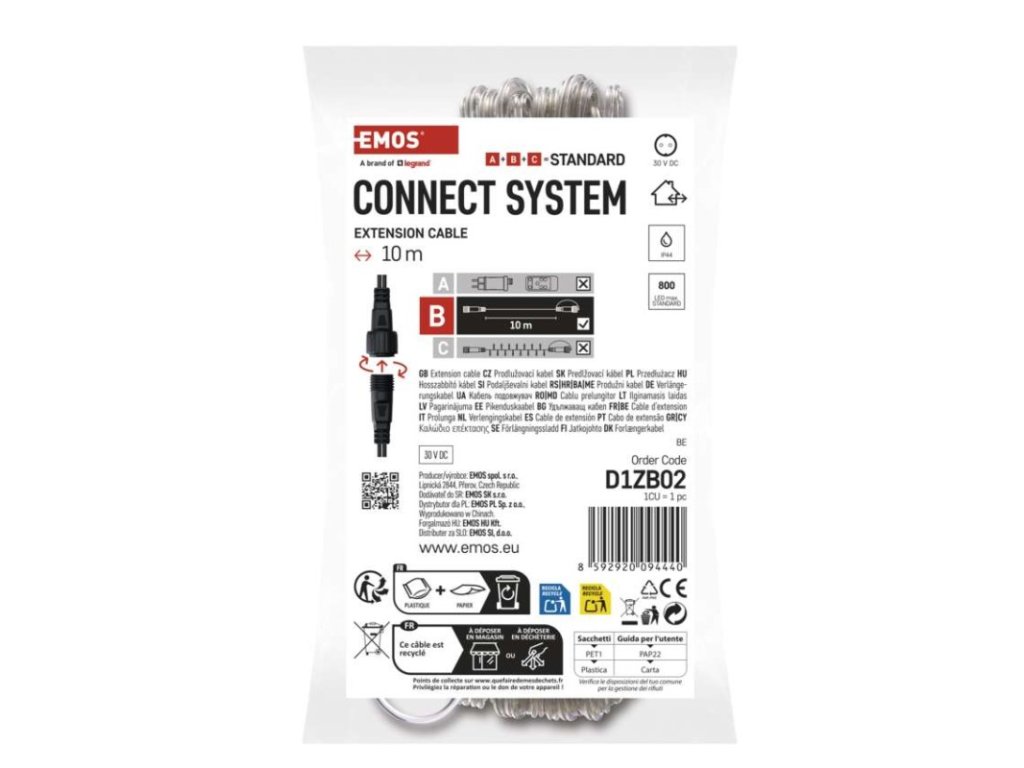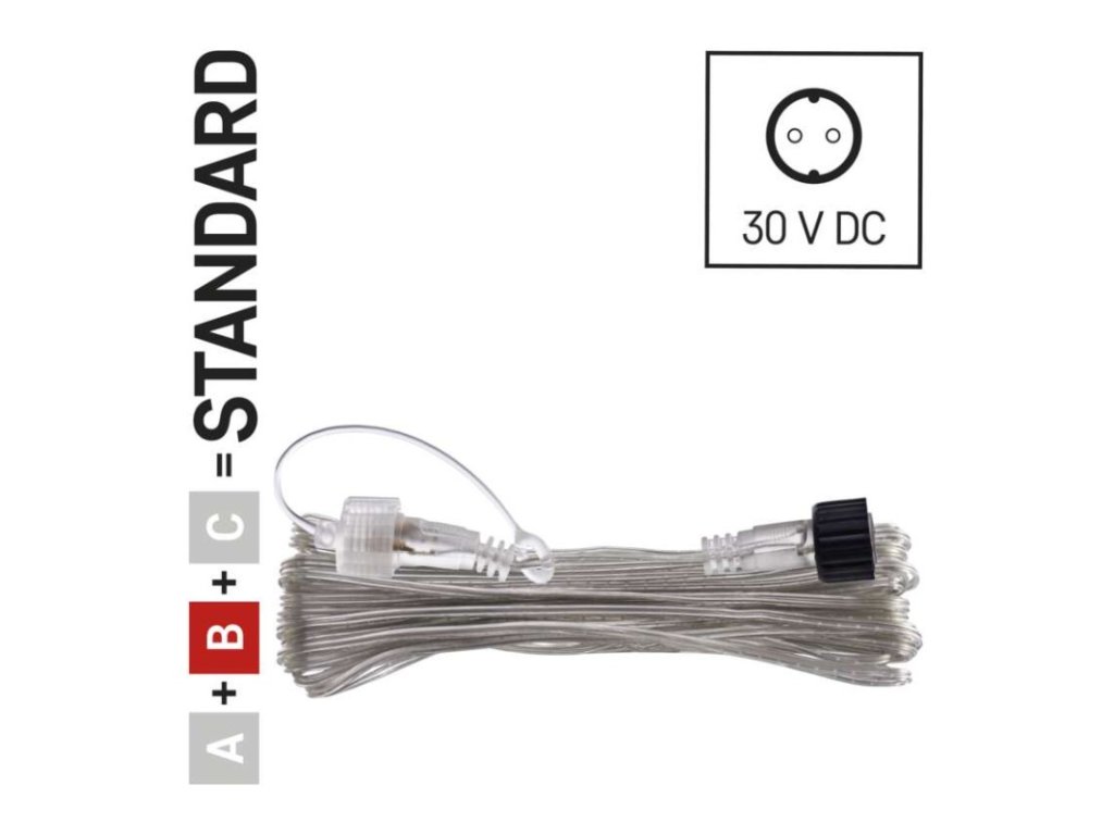 barva drátu: transparentní|časovač: ne|dálkový ovladač: ne|délka přívodu: 10 m|krytí: IP44|materiál: plast|max. počet propojení: 800 LED|použití: venkovní i vnitřní|příkon: neuvádí se|prodejní obal: 1 ks, závěs|produkt: prodlužovací kabel|pro řadu: standard|typ napájení: neuvádí se|vstupní napětí: 30 V DC|výstupní napětí: neuvádí se|záruční doba: 2 roky|životnost: 10 000 hodin