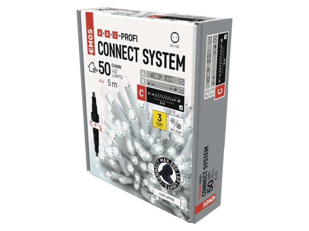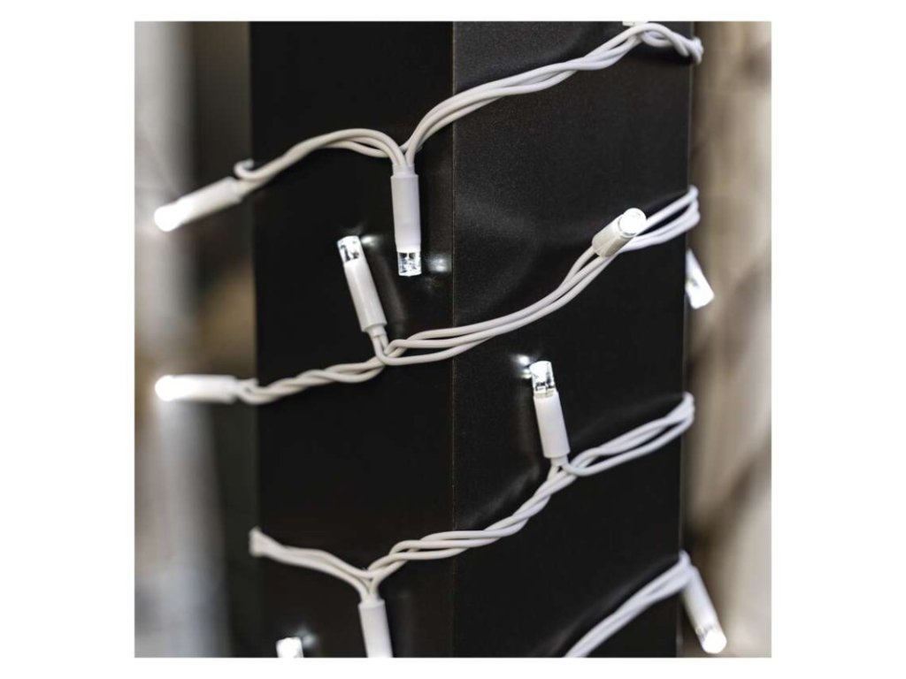 barva drátu: bílá|barva světla: studená bílá|časovač: neuvádí se|dálkový ovladač: ne|délka přívodu: 10 cm|funkce: svítí|krytí: IP44|LED mezera: 10 cm|materiál: guma|možnost propojení: ano|počet LED: 50|použití: venkovní i vnitřní|příkon: max. 4 W|prodejní obal: 1 ks, krabice|produkt: řetěz|pro výšku stromu: neuvádí se|rozměr: 5 m|tvar: klasický|typ napájení: síťový adaptér (není součástí balení)|velikost LED: 7 mm|vstupní napětí: 30 V DC|výstupní napětí: neuvádí se|záruční doba: 3 roky|životnost: 10 000 hodin