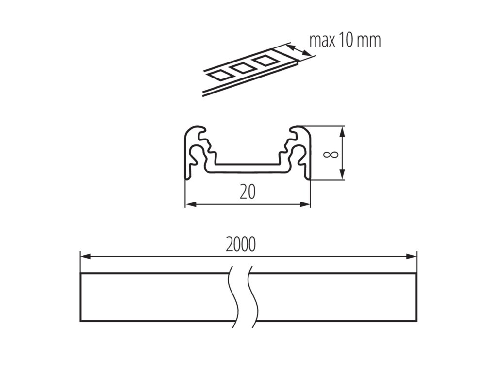 PROFILO D 2M Hliníkový profil bez difuzoru (10 ks po 2m v balení)