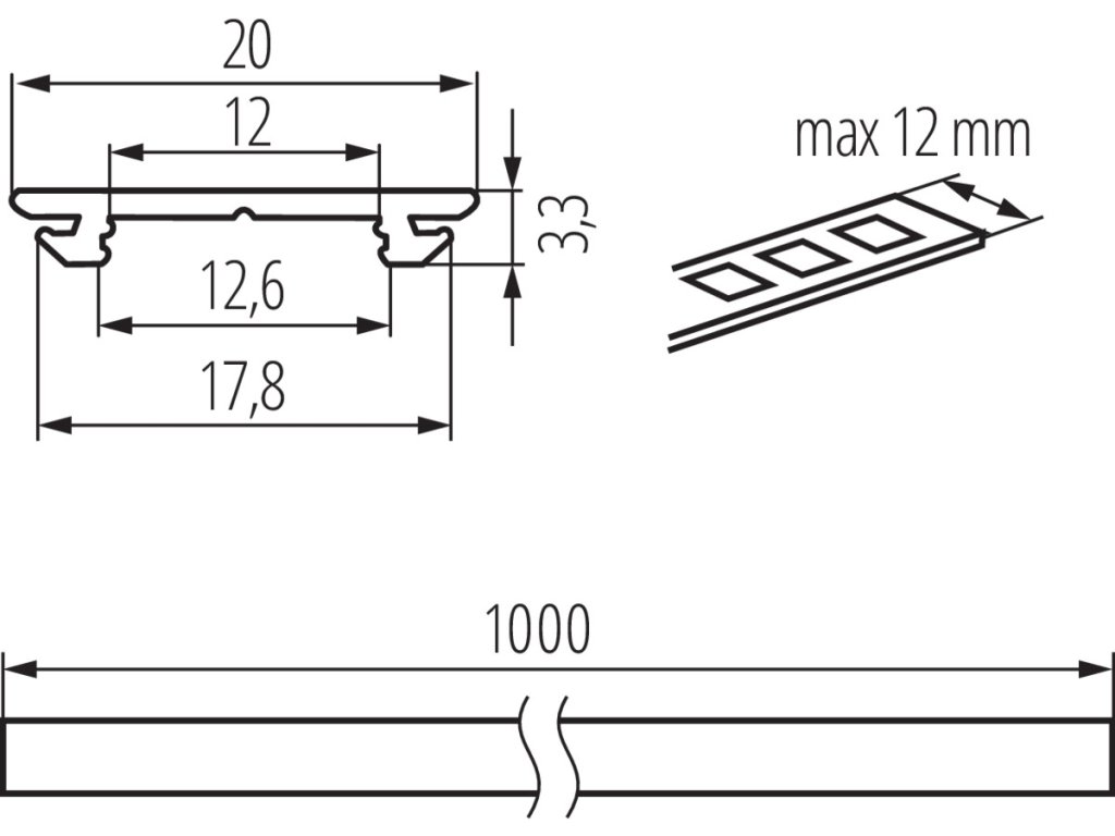 PROFILO H Hliníkový profil bez difuzoru (10 ks po 1m v balení)