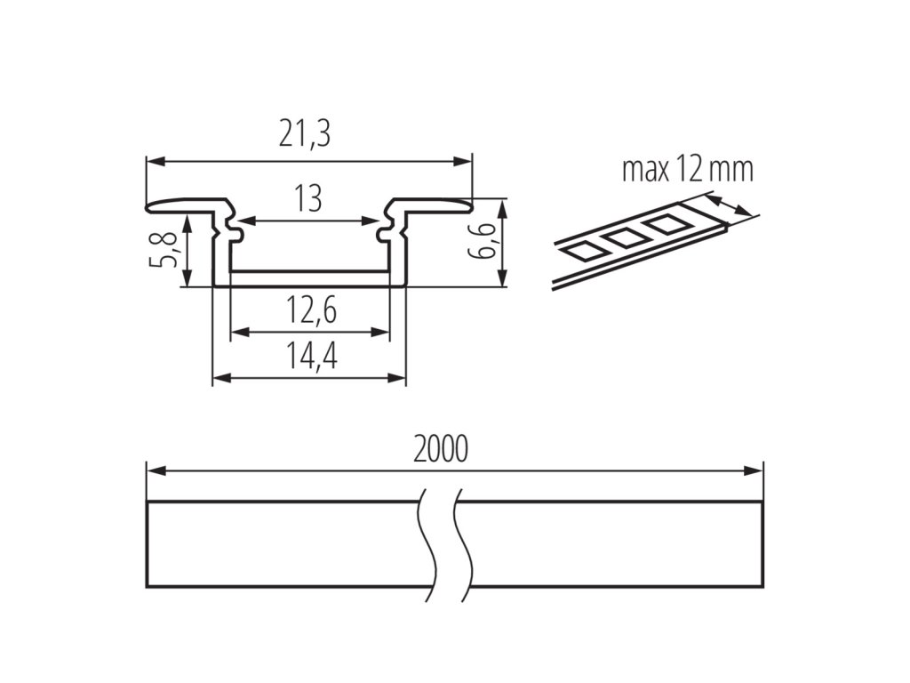 PROFILO K-W 2M Hliníkový profil bez difuzoru (10 ks po 2m v balení)
