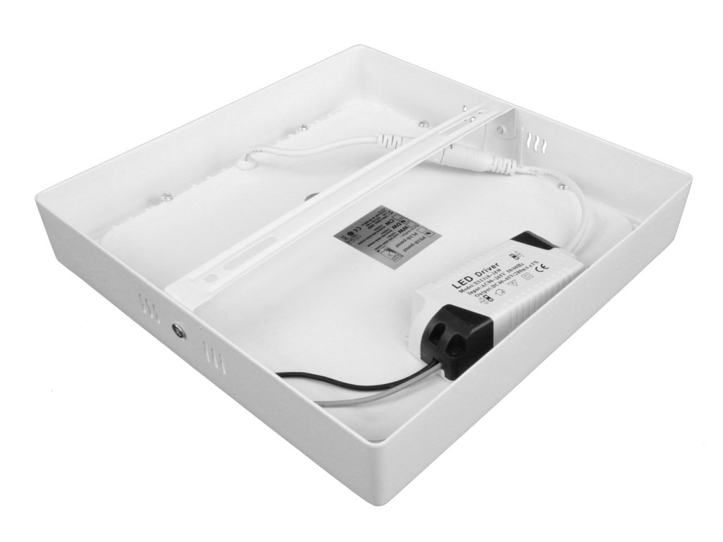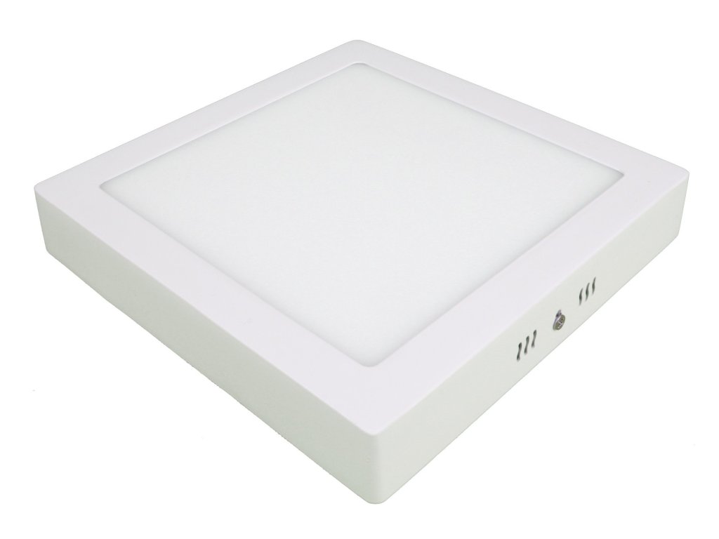 Čtvercový přisazený LED panel 18W. Díky bočnímu nasvětlování nejsou jednotlivé LED diody při rozsvícení viditelné a svítidlo je díky tomu také velmi nízké. LED panel nabízíme ve barvách světla teplá bílá, denní bílá a studená bílá.