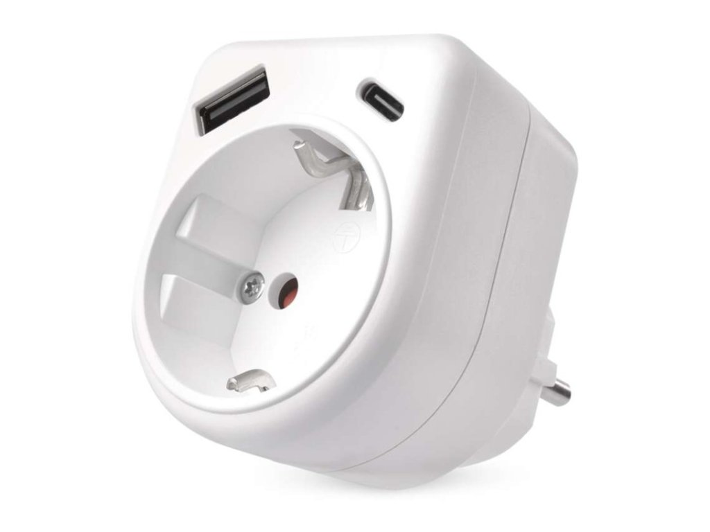 Rozbočovací zásuvka 1×, 1×USB-A+1×USB-C, bílá
