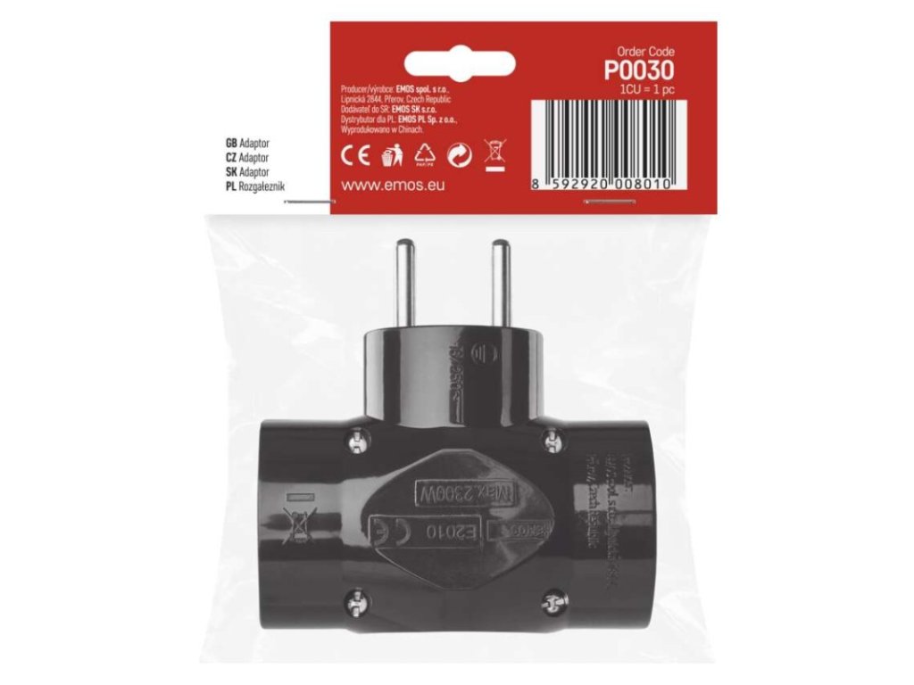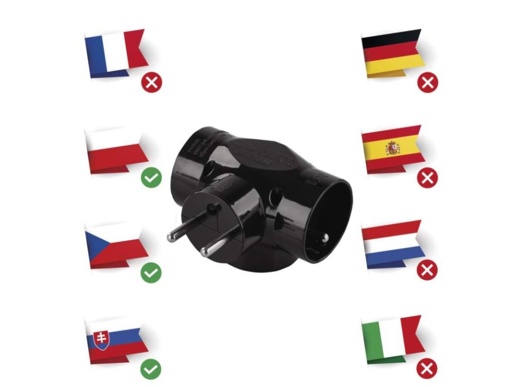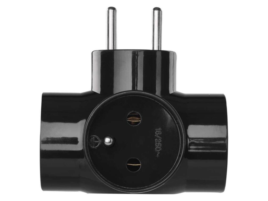 barva: černá|dálkový ovladač: ne|dětské clonky: ne|dosah signálu: neuvádí se|easy learning: ne|krytí: IP20|materiál: plast|max. zátěž: 2 300 W|možnost ovládání: ne|napětí/proud: 250 V~/10 A max.|počet pólů: neuvádí se|počet zásuvek: 3× 2P + PE|pozice ochranného kontaktu: neuvádí se|přenosoná frekvence: ne|prodejní obal: 1 ks, závěs|produkt: rozbočovací zásuvka 3×|typ: FRENCH|venkovní použití: ne|vypínač: ne