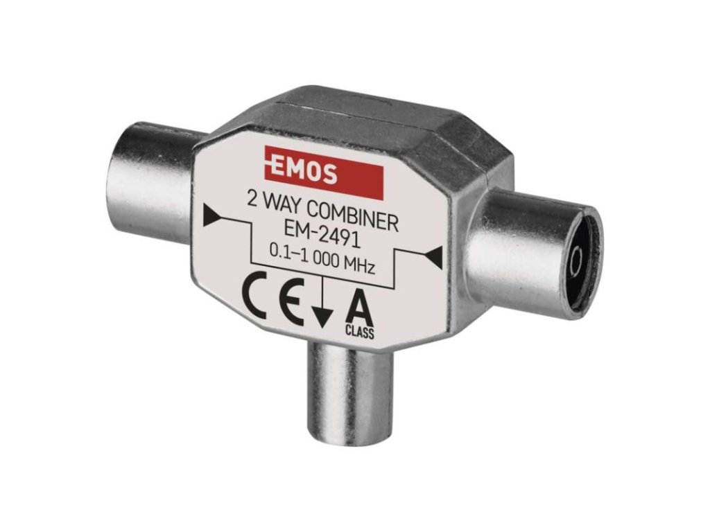 frekvenční rozsah: 0,1–1 000 MHz|krytí: IP20|materiál těla: zinkový odlitek|počet vstupů: 2|počet výstupů: 1|použitelný pro sloučení satelitního signálu: ne|použití: TV + R|pracovní teplota: -10–+65 °C|prodejní obal: 1 ks, PVC sáček|produkt: slučovač TV+R|provedení: univerzální feritový|průchozí pro stejnosměrné napětí (power pass): ano|průchozí útlum: 3,5 dB|rozměr: 17 × 32 × 23 mm|tlumení odrazu na vstupu: neuvádí se|typ konektorů: IEC|zvlnění v pásmu: neuvádí se