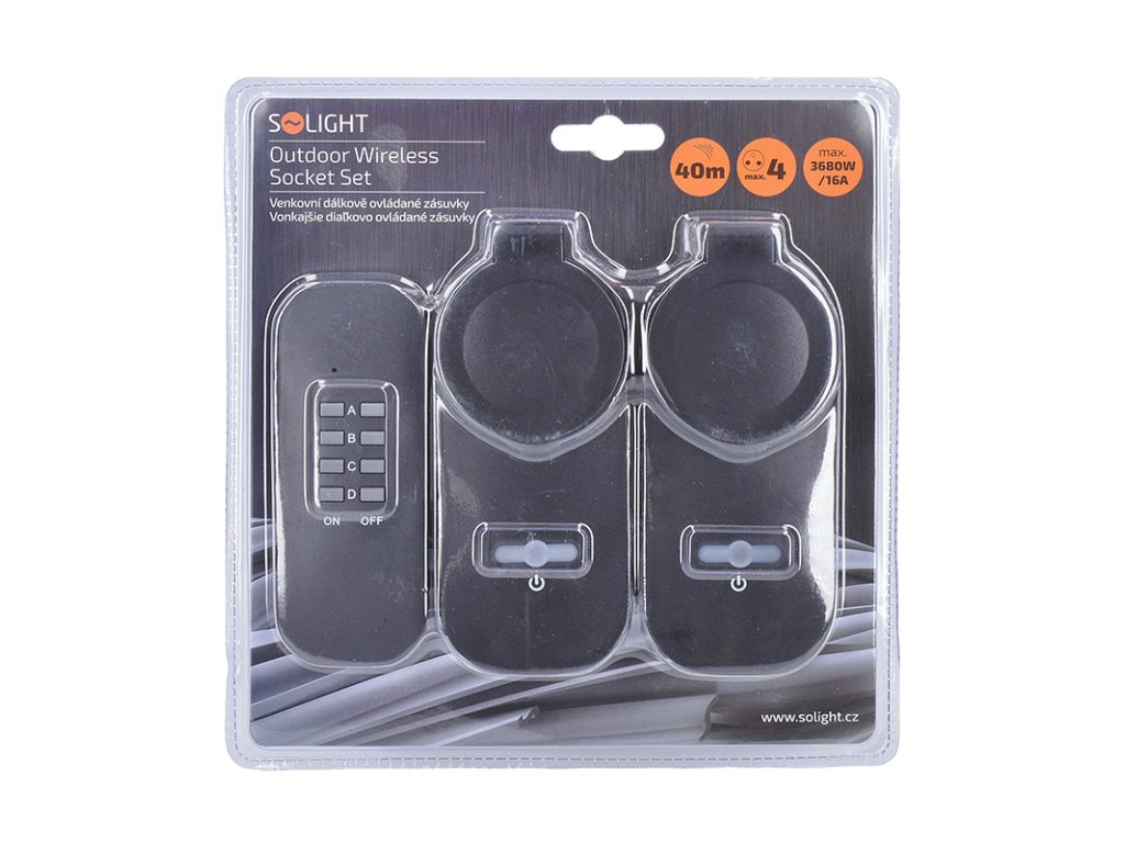 Solight dálkově ovládané venkovní zásuvky set 2 + 1, 2 zásuvky, 1 ovladač, learning code