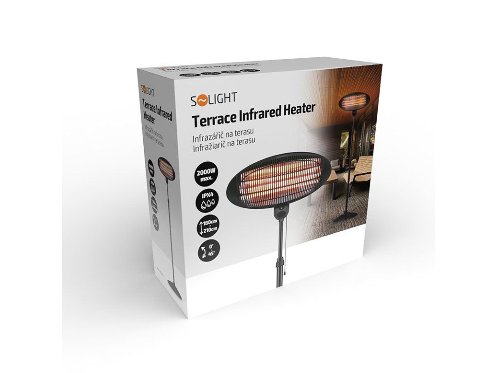 Infračervený venkovní zářič ihned produkuje zdravé a příjemné infračervené tepelné záření o výkonu až 2000 W bez předehřívání. Topidlo je vybavenou stojanem pro možnost flexibilní instalace. Nastavení 3 stupňů topení pomocí vypínače ovládaného provázkem.