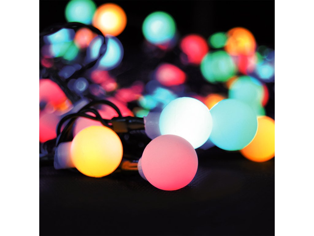Solight LED 2v1 venkovní vánoční řetěz, koule, dálkový ovladač, 200LED, RGB+bílá, 20m+5m, 8 funkcí, IP44