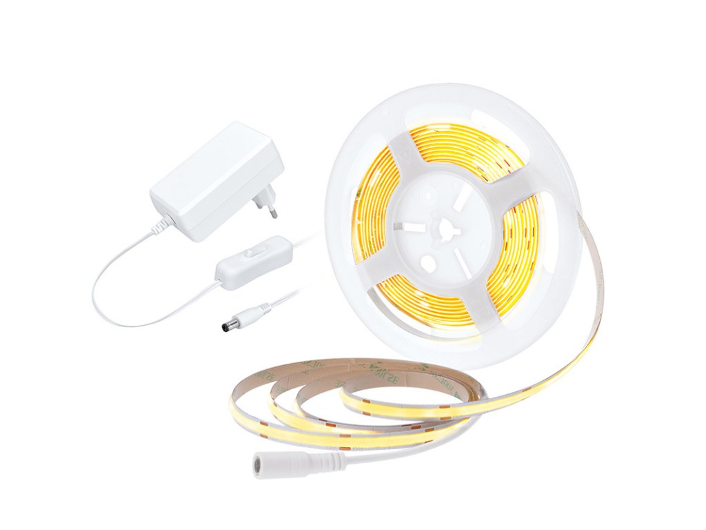 - sada LED pásku s COB diodami a napájecím adaptérem s vypínačem na kabelu