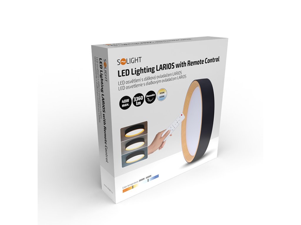 Solight LED osvětlení s dálkovým ovladačem Larios Black, 48W, 3360lm, 39cm, změna chromatičnosti, stmívatelné