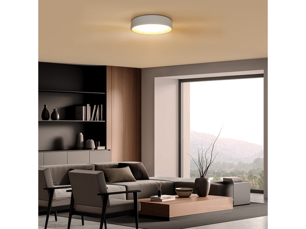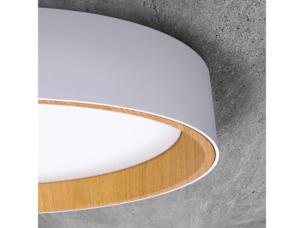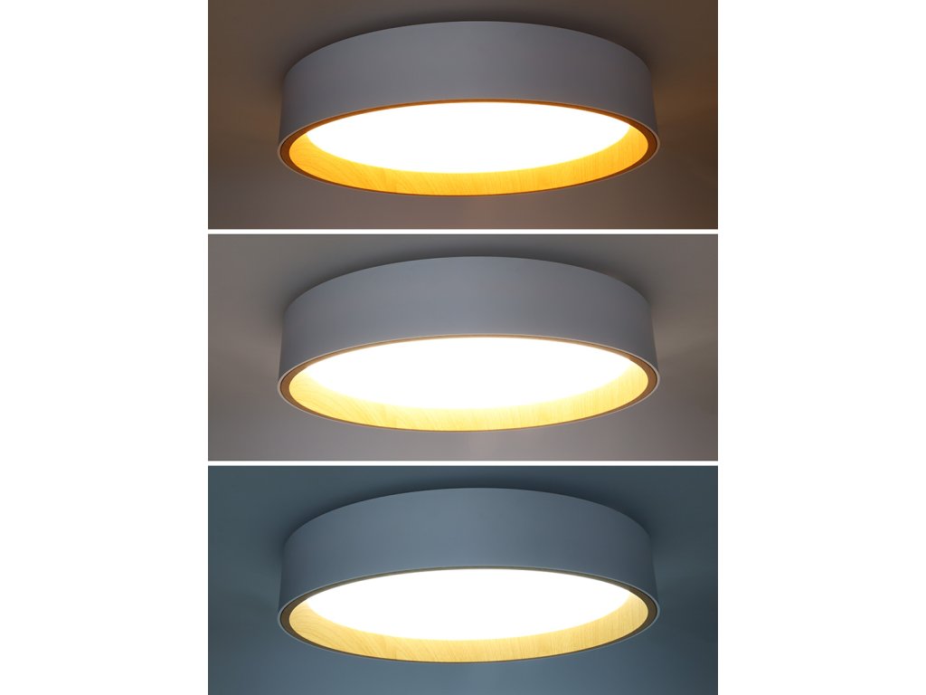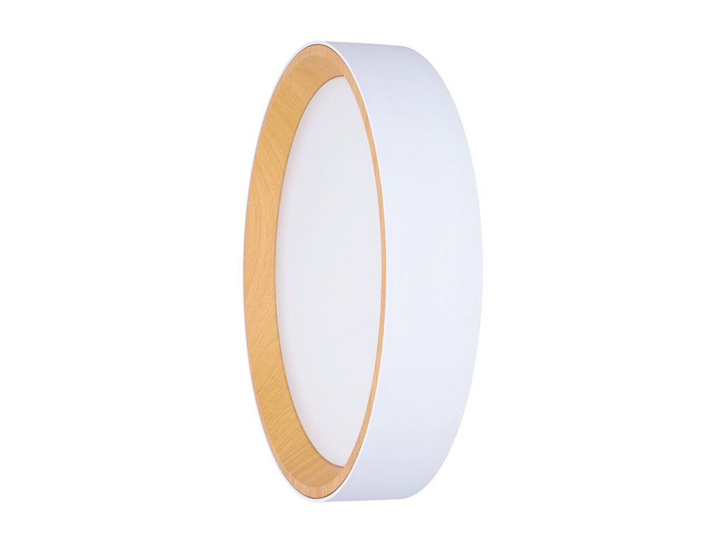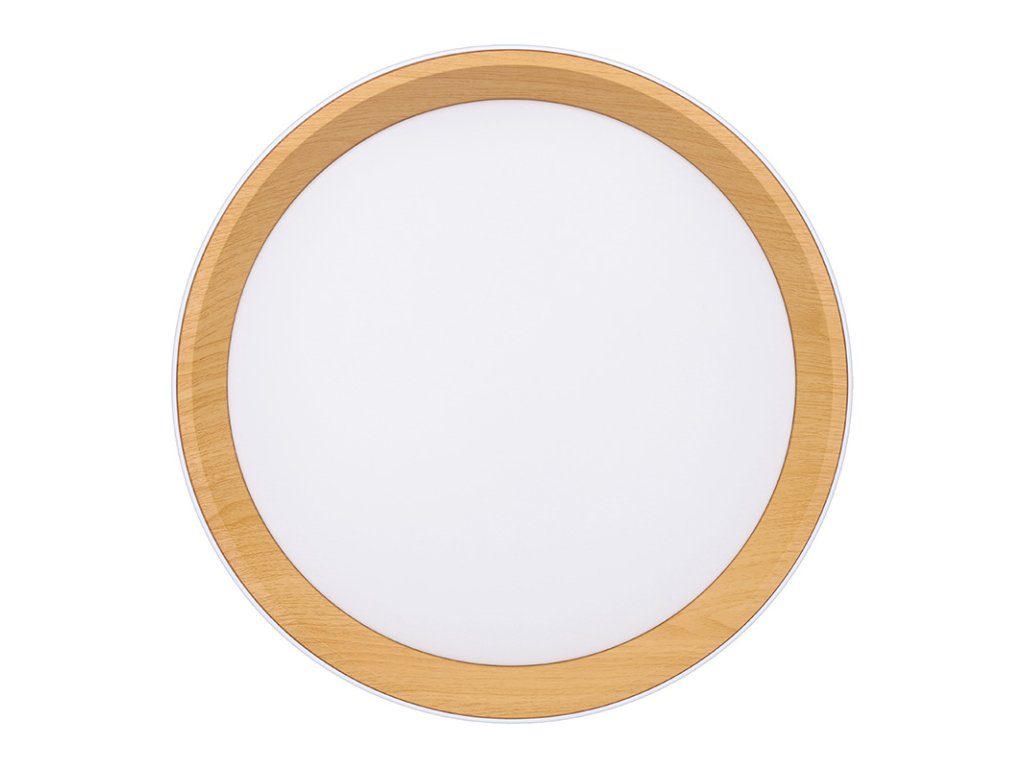 Design v elegantní bílé barvě s imitací dřevěného dekoru vnitřního prstence dodává interiéru příjemný a přírodní vzhled. Díky dálkovému ovladači můžete snadno regulovat intenzitu světla, teplotu (3000K - 6500K) i výběr přednastavených režimů osvětlení, což umožňuje přizpůsobení atmosféry dle vašich potřeb.