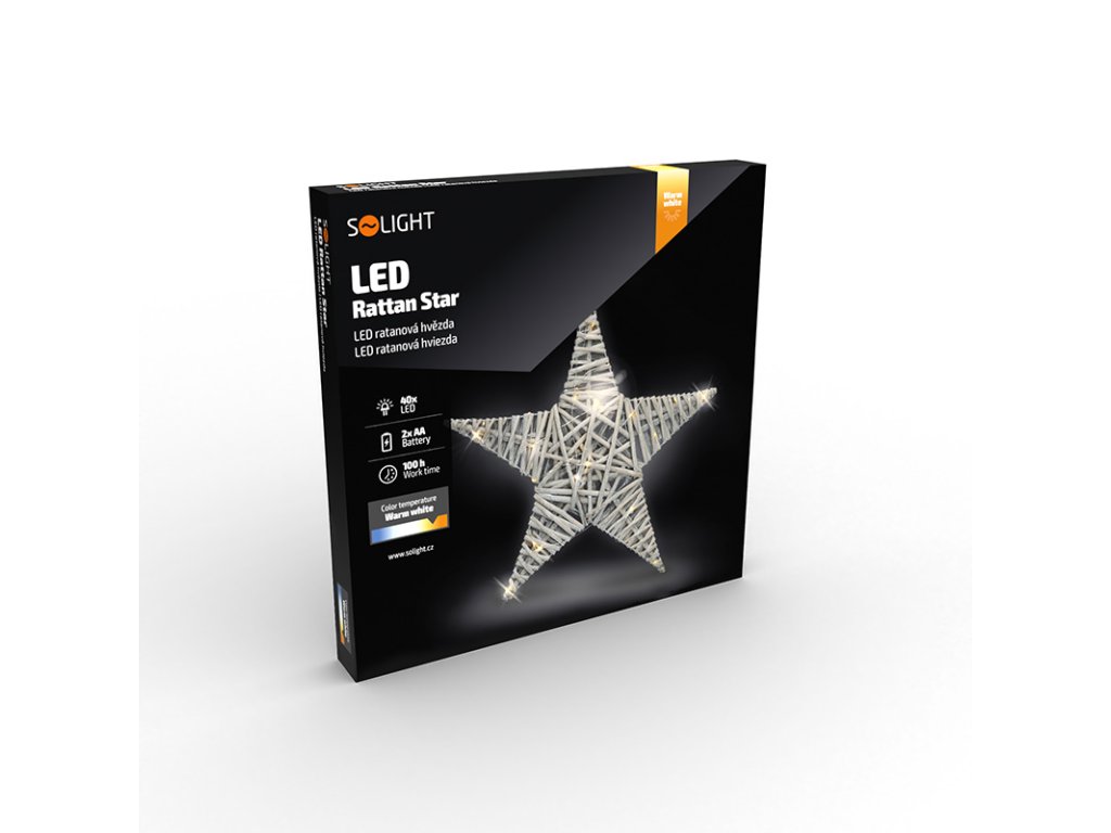 Solight LED ratanová hvězda, 40x LED, 2xAA, 40cm