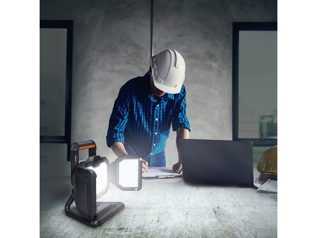 Silný, praktický a všestranný – přesně takový je přenosný LED reflektor s výkonem až 30W a světelným tokem 3000 lumenů při plném nabití. Nabízí neutrální bílé světlo (4000K), které je ideální pro práci v interiéru i venku. Tři úrovně svícení (100 %, 50 %, 20 %) umožňují přizpůsobit intenzitu světla konkrétní situaci.