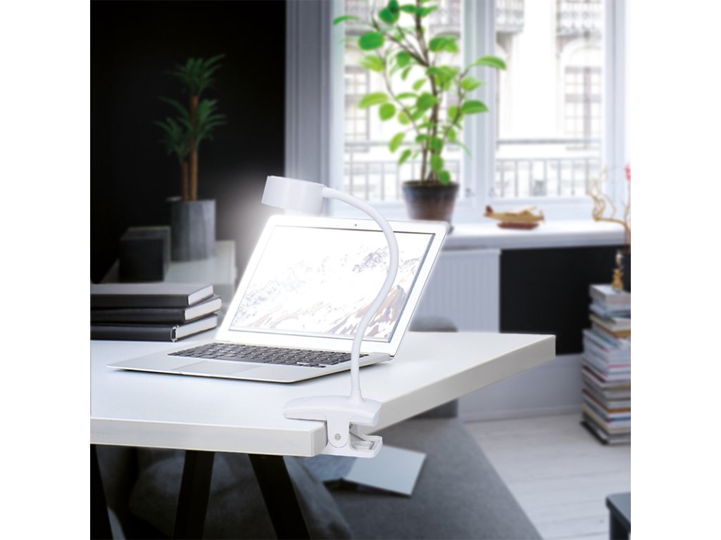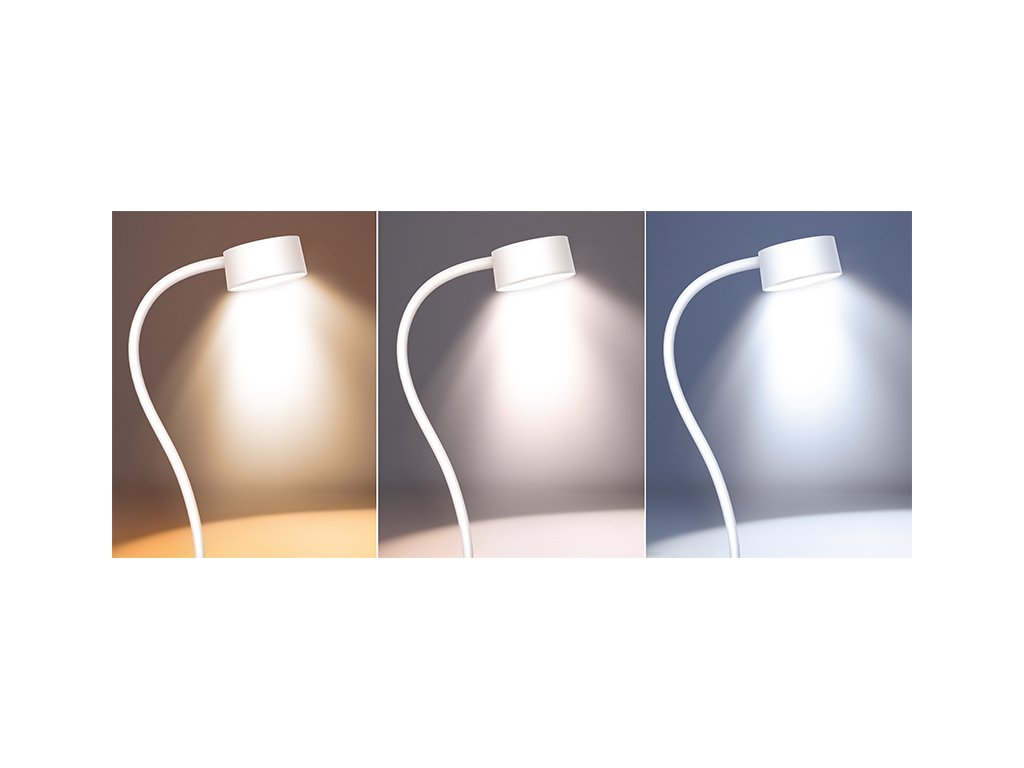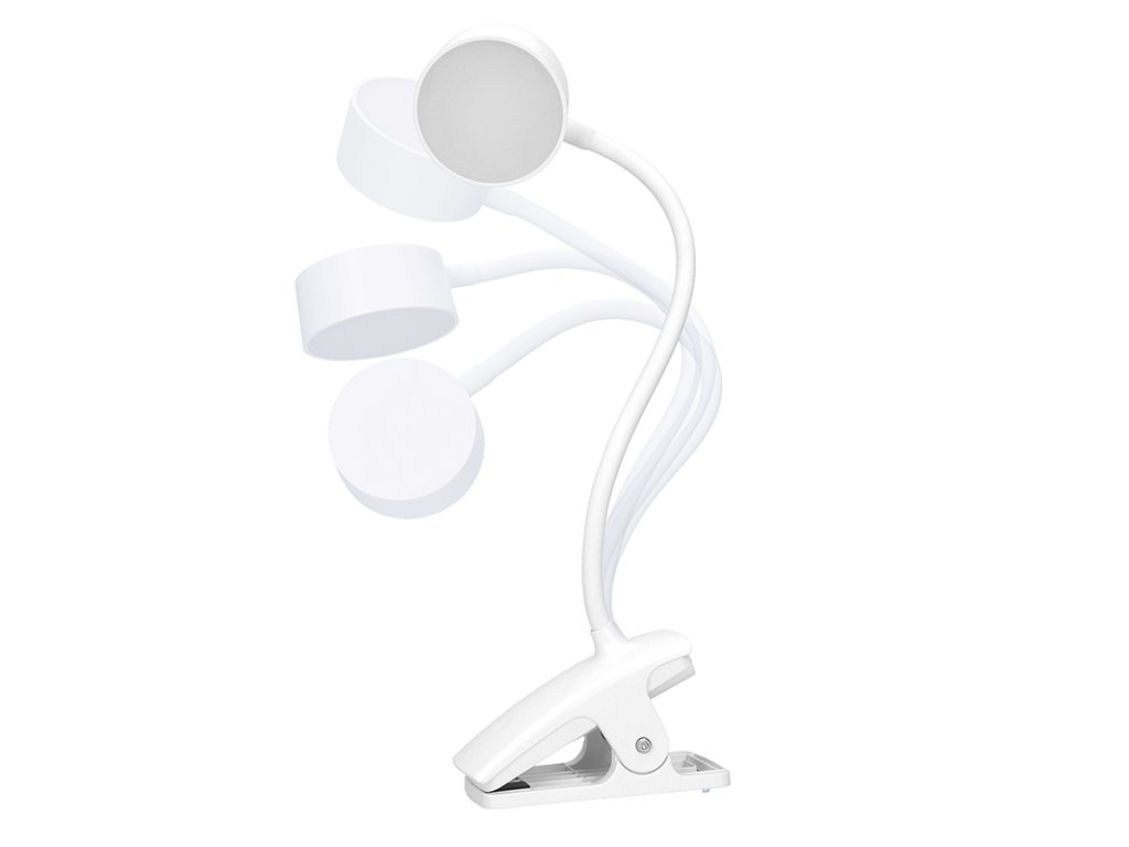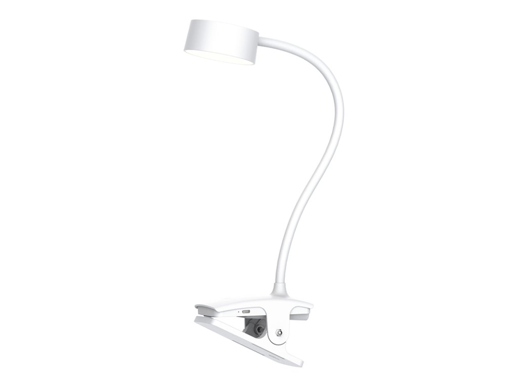 Bílá varianta nabíjecí lampičky s klipem kombinuje přenosnost, úspornost a jednoduché ovládání. Nabízí tři úrovně jasu, teploty světla (3000K/4000K/6500K) a výdrž až 3,5 hodiny na jedno nabití. Dotykové ovládání je intuitivní a příjemné na používání.