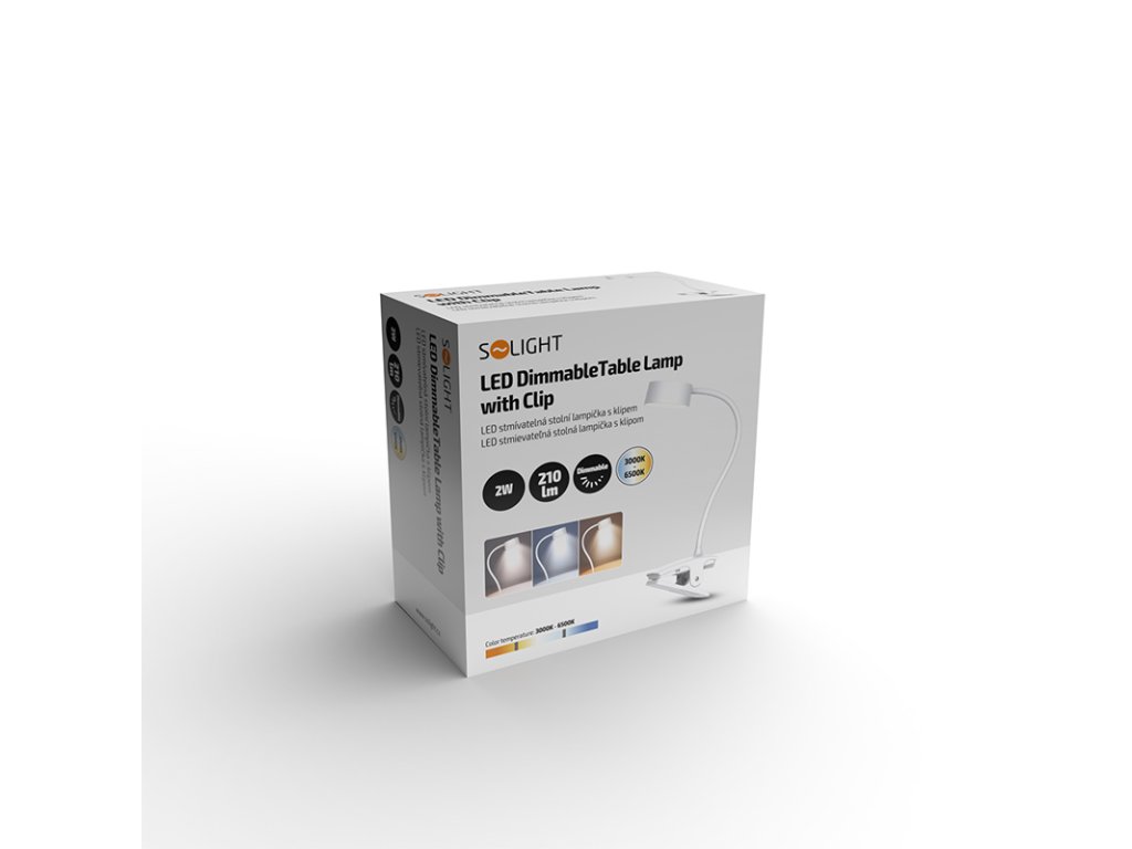 Solight LED stolní nabíjecí lampička, 2W, 210lm, 3CCT, bílá, clip