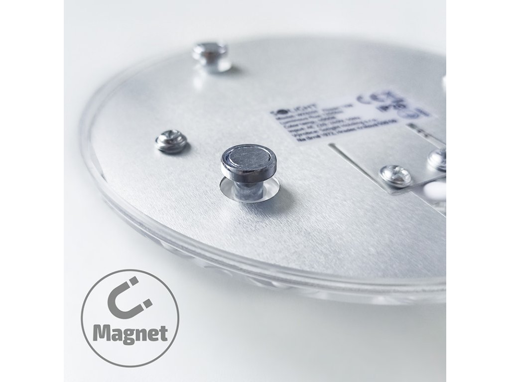 - LED světelný zdroj určený do stropních svítidel s kovovou základnou. Světelný zdroj se k základně připevňuje pomocí v budovaných magnetů.